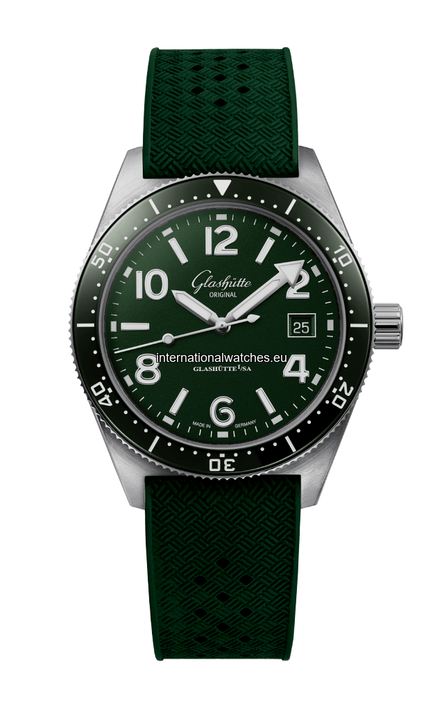 The SeaQ diver’s watch with green dial ensures optimal legibility & is therefore ideal for underwater adventures. Stainless steel, rubber strap green.