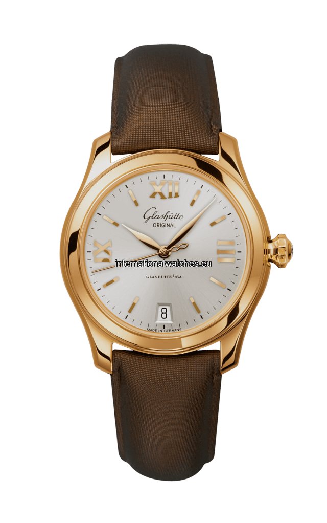 An elegant ladies’ watch in rose gold: our Lady Serenade. With refined mechanics, made from precious materials. Silver dial, small date, leather strap.