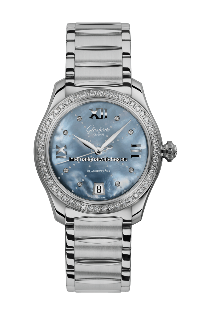 Lady Serenade in blue: this ladies’ watch is a timeless classic with an automatic movement, blue mother-of-pearl dial and metal bracelet.