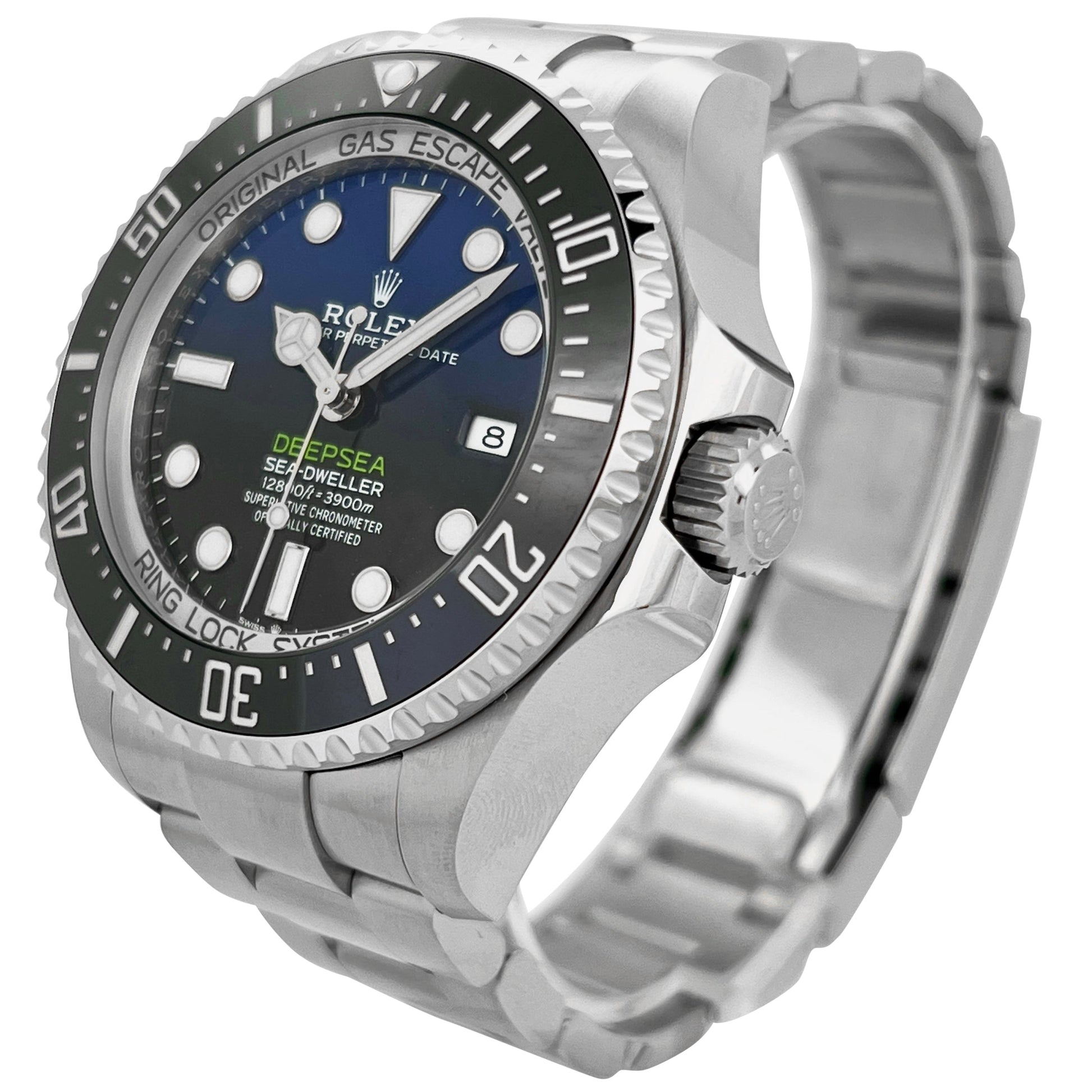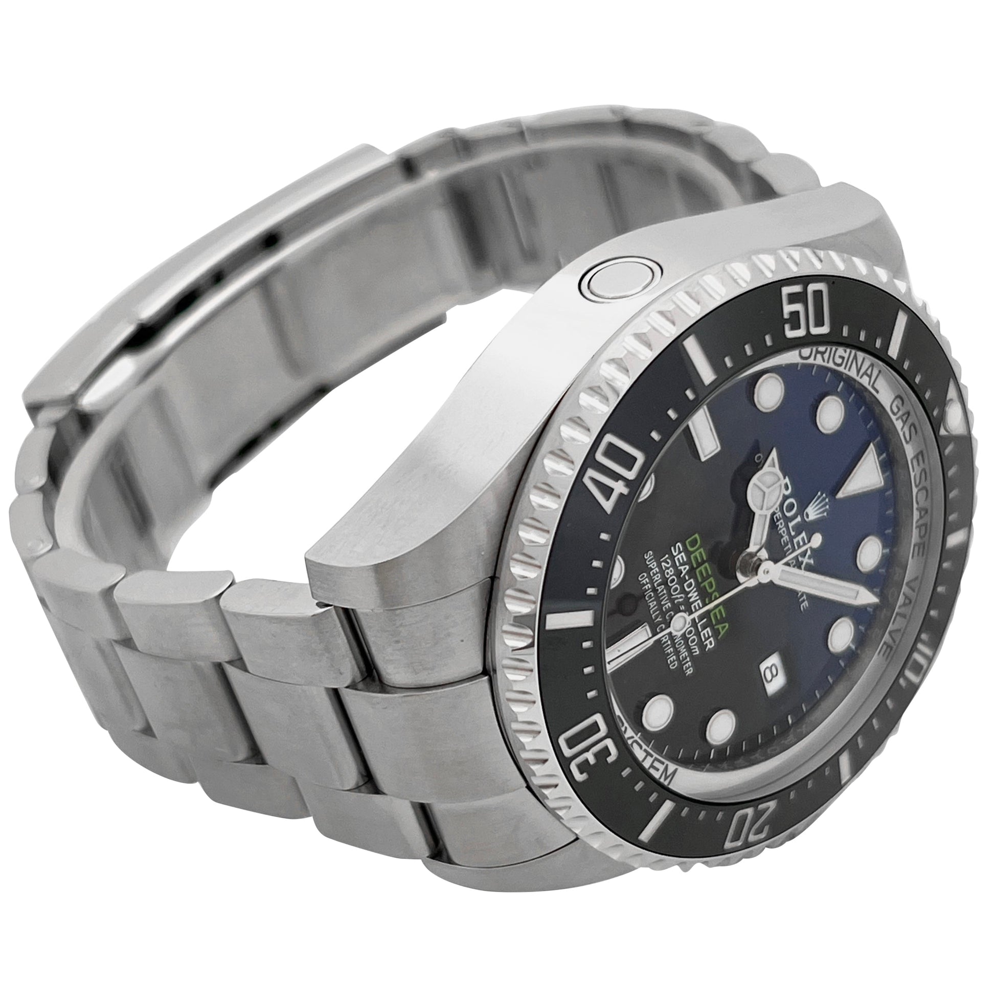 The Rolex Deepsea 126660features a black dial and large luminescent hour markers. In addition, it is waterproof to a depth of 12,800 feet (3,900 metres) with a unidirectional 60-minute rotatable bezel. In short, the Rolex Deepsea is amongst the ultra-resistant divers’ watches engineered by Rolex for deep-sea exploration.