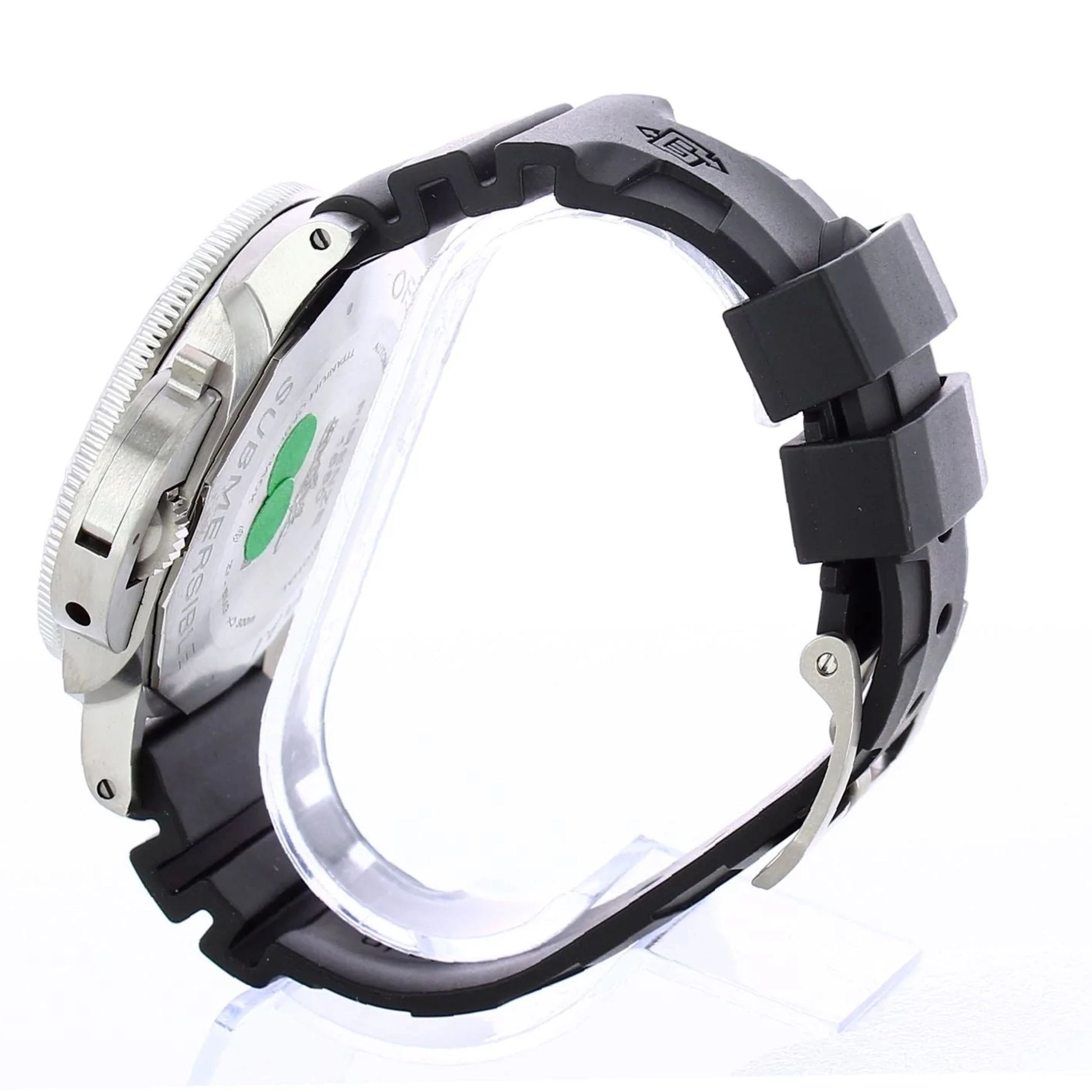 The 2017 Panerai Luminor Submersible PAM00692 has its case, bezel and trademarked crown protector done in BMG-Tech', a material exclusive to Panerai. Stainless steel case with a black rubber strap with ardillon buckle clasp. Bezel BMG-Tech™. Blue dial with applied luminous hour markers. Date window displayed at the 3 o'clock position, Small seconds at 9 o’clock. Automatic movement P.9010 calibre with power reserve of 72 hours. The winding crown is protected by the classic bridge device with lever . Ref. 692