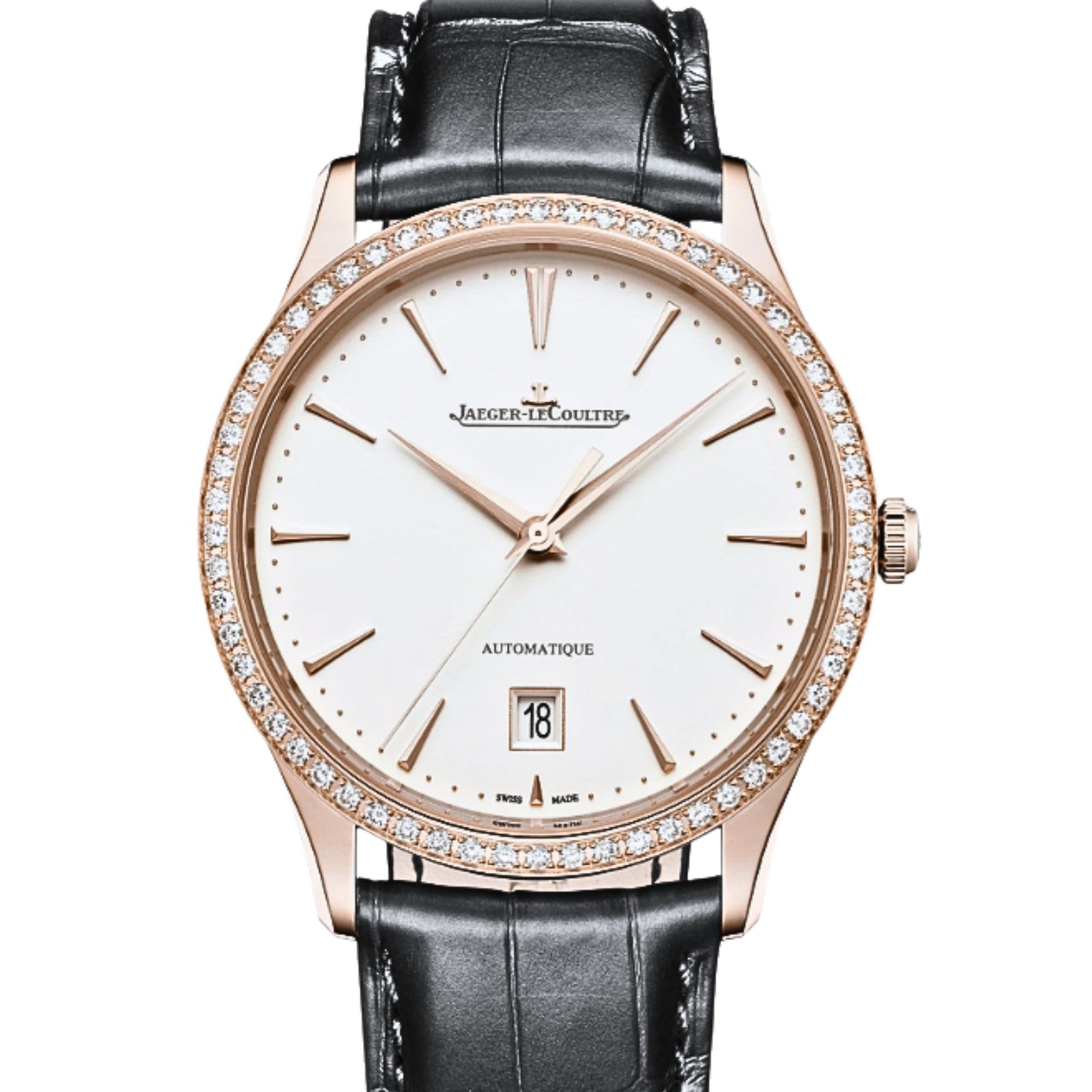 Its understated bezel set with brilliant-cut diamonds confers an extra degree of sophistication to the Master Ultra Thin Date watch in pink gold. The marked intensity of its eggshell-colored dial is highlighted by the Dauphine hands and golden hour-markers, enhancing the timepiece’s refined and elongated silhouette. In addition to the traditional functions it delivers (hours, minutes, seconds), this watch is recognizable at first sight by its date, clearly visible under the new window of its aperture at 6 o'clock.