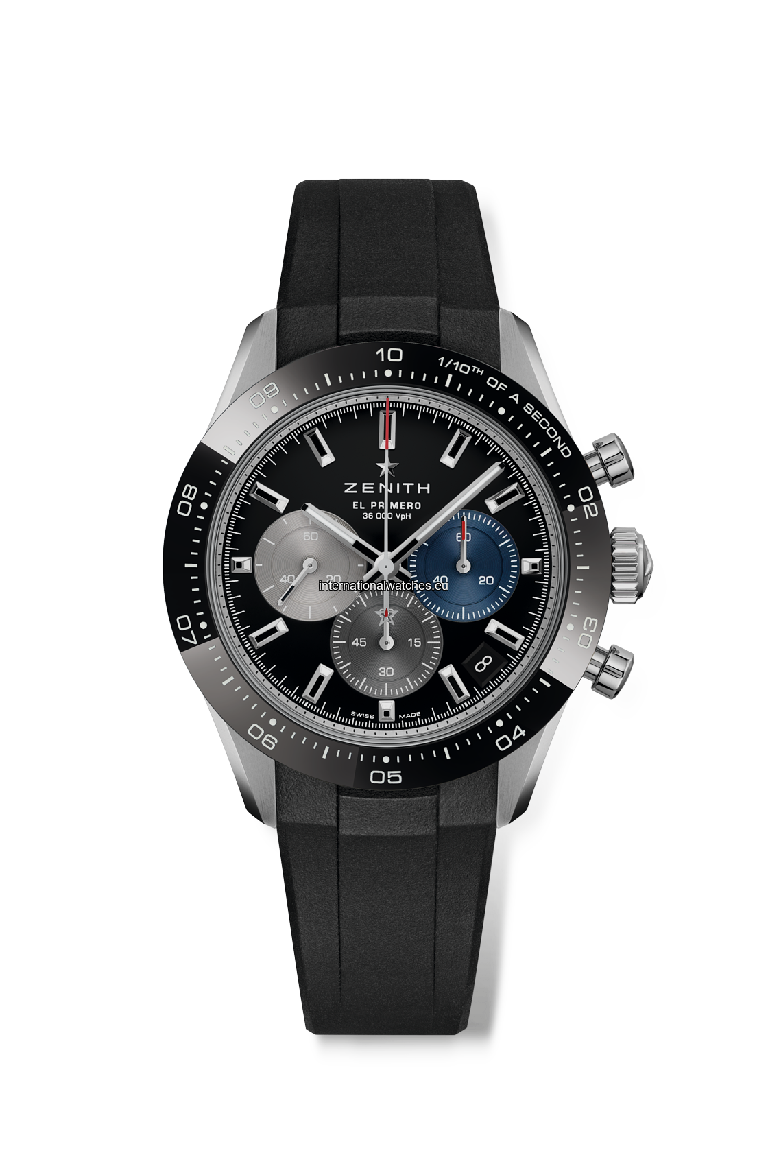 integrated black FKM rubber strap. Powered by the El Primero 3600 1/10th of a