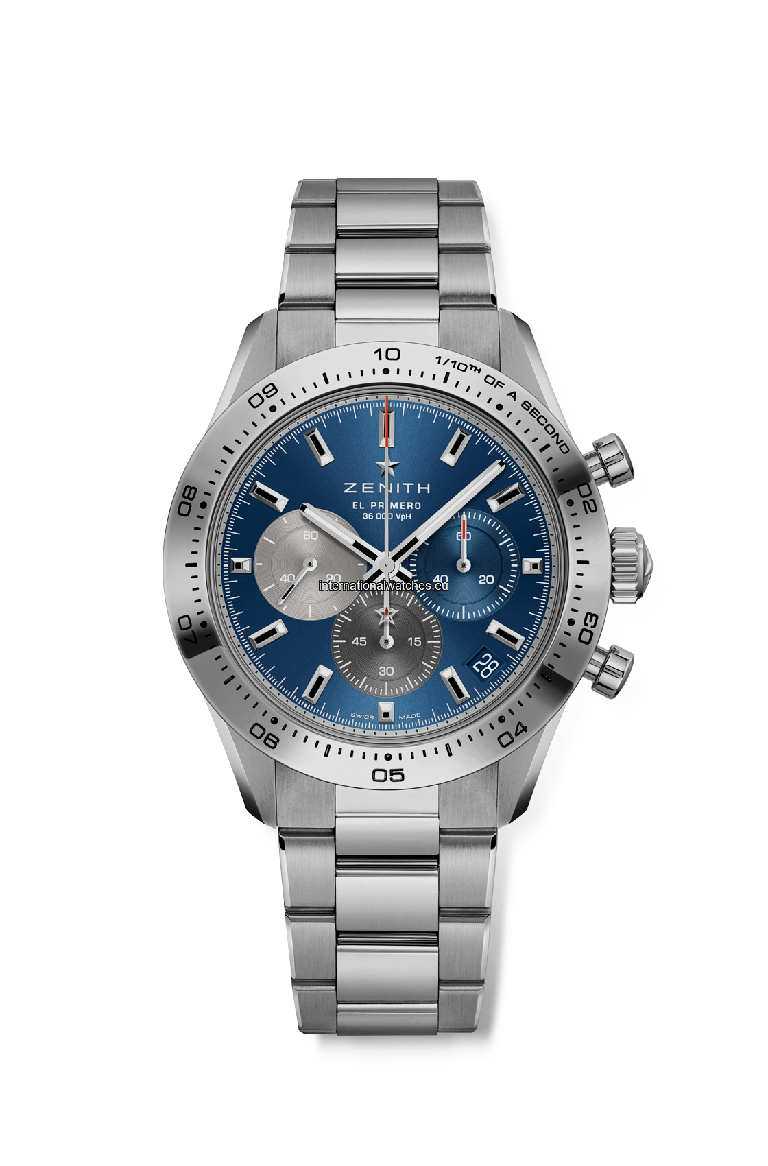 The CHRONOMASTER Sport is crafted in a 41mm steel case with a polished steel bezel, paired with a metallic blue tricolour dial and a steel bracelet. Powered by the El Primero 3600 automatic high-frequency chronograph movement with 1/10th of a second chronograph function and a power reserve of 60 hours.