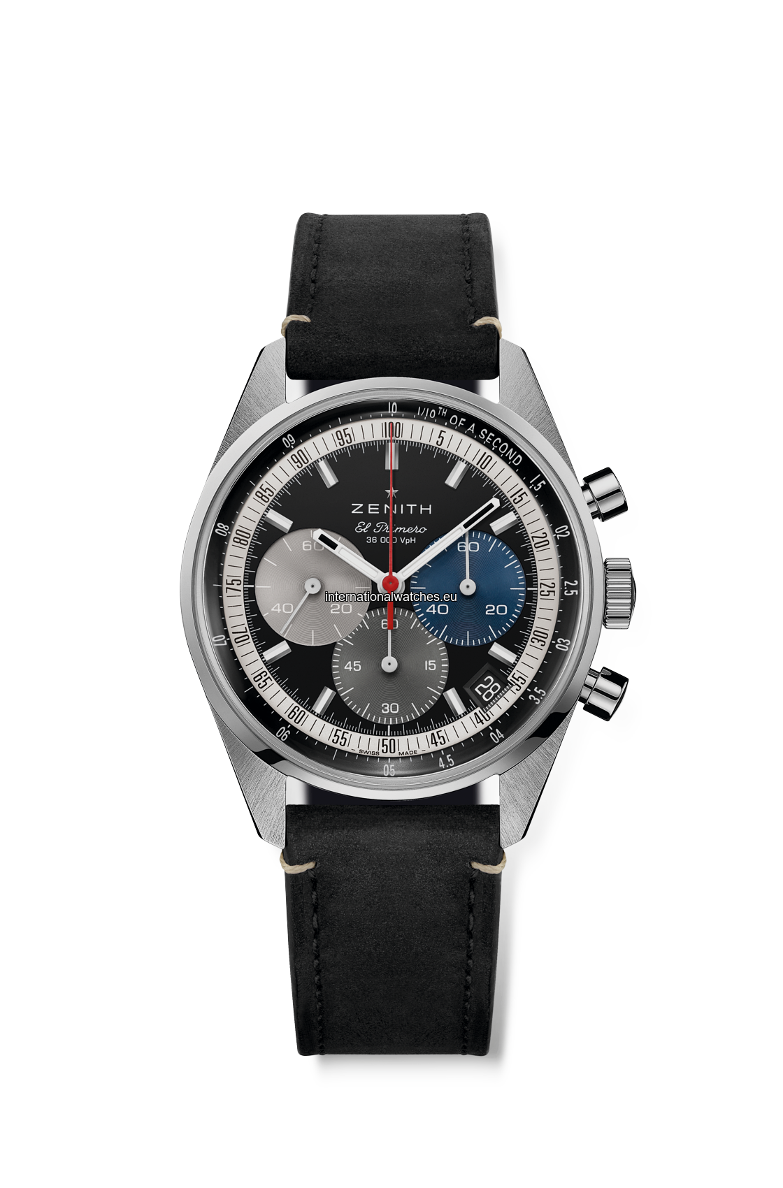 The CHRONOMASTER Original is crafted in a 38mm steel case in the same proportions as the A386, paired with a reimagined black tricolour dial and a black calfskin strap. Powered by the El Primero 3600 automatic high-frequency chronograph movement with 1/10th of a second chronograph function and a power reserve of 60 hours.