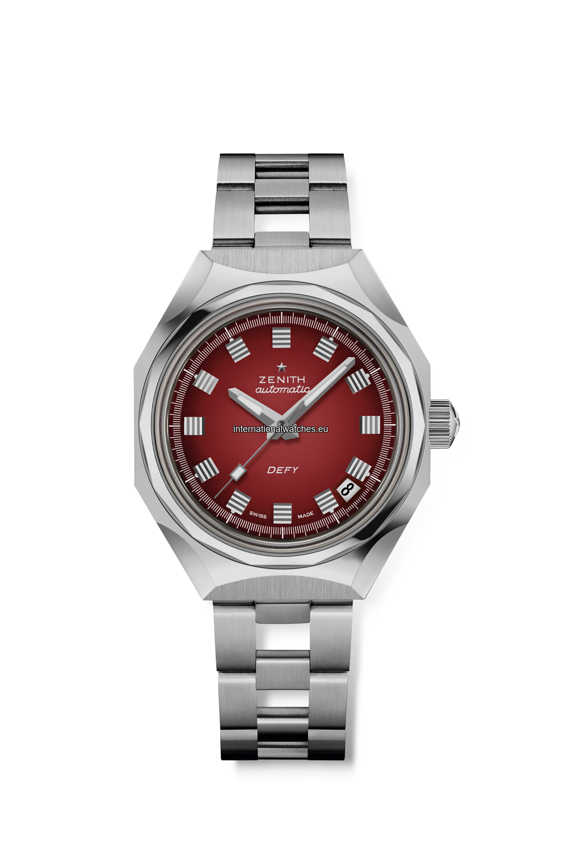 A faithful reproduction of one of the first DEFY wristwatch with a coloured dial. Crafted in a robust octagonal stainless steel case with 14-sided bezel and paired with a deep red gradient-effect dial and steel ladder bracelet. Powered by the ELITE 670 automatic manufacture movement.