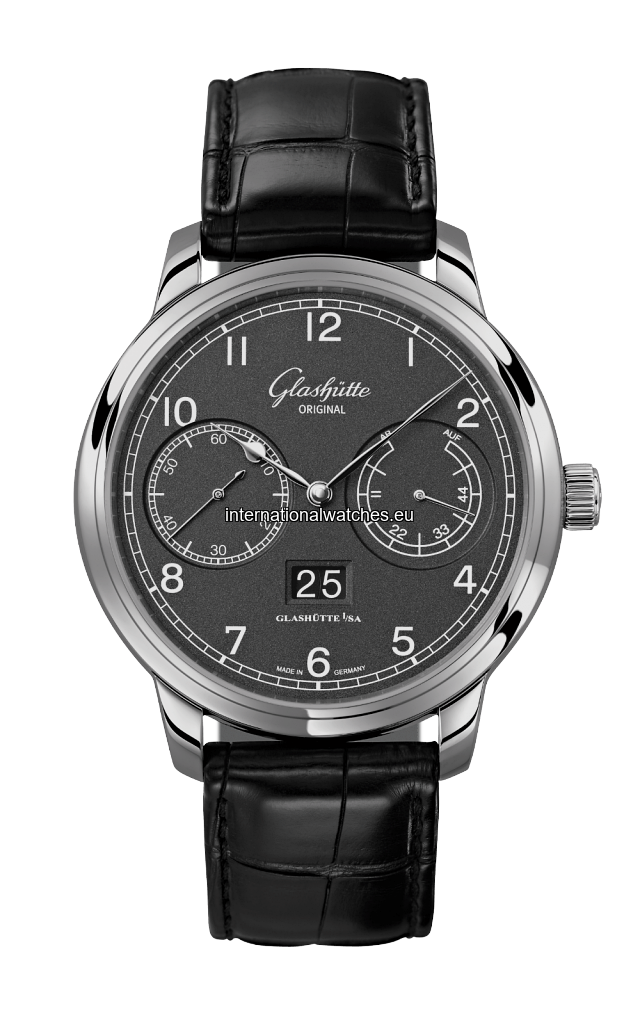 Extremely precise & clearly legible: the Senator Observer watch. Stainless steel, grey dial, Panorama Date, power reserve display, black leather strap.