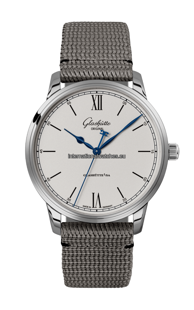 Impresses thanks to its simple and elegant design: The dress watch Senator Excellence. Stainless steel, silver dial, second stop, grey synthetic strap.
