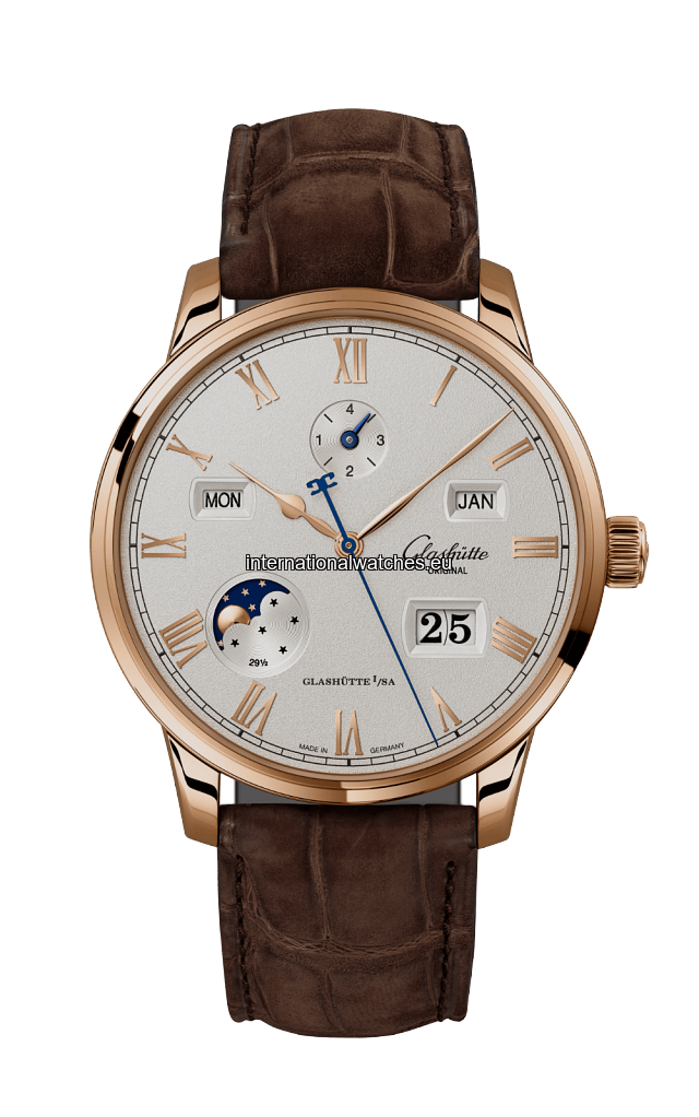 The Senator Excellence Perpetual Calendar watch is a class of ist own. Red gold, silver dial, Panorama Date, moon phase, brown leather strap.
