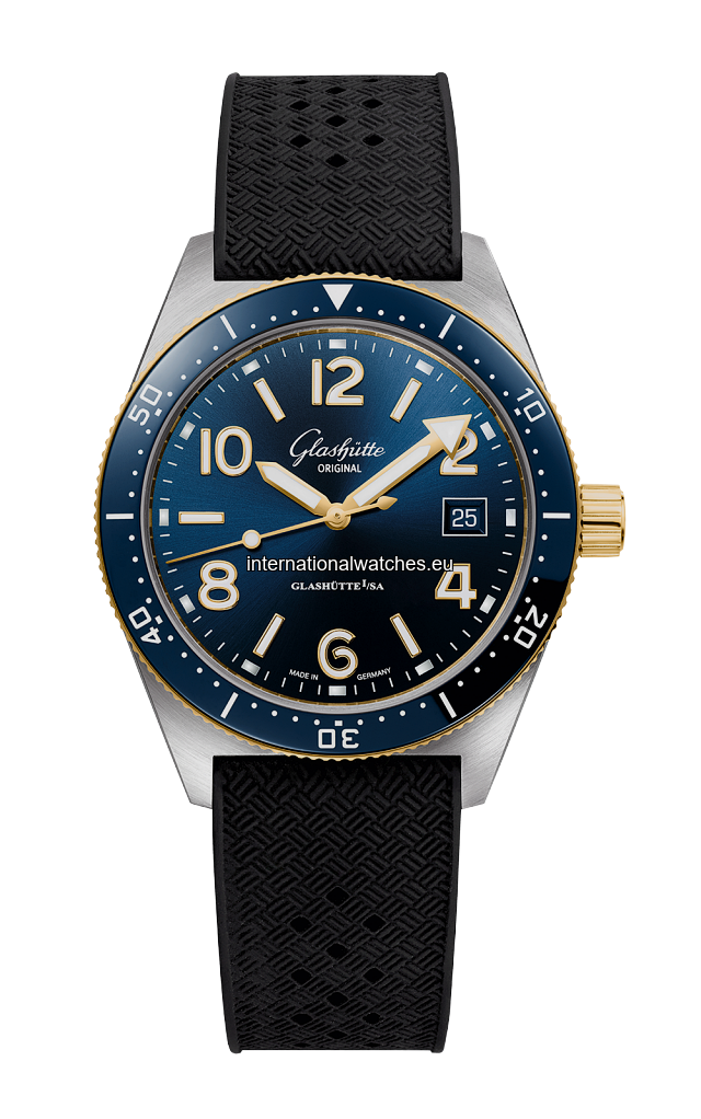 SeaQ in bi-colour: a stylish diver’s watch, perfect for sporty ventures as well as business appointments. Blue dial, rubber strap.