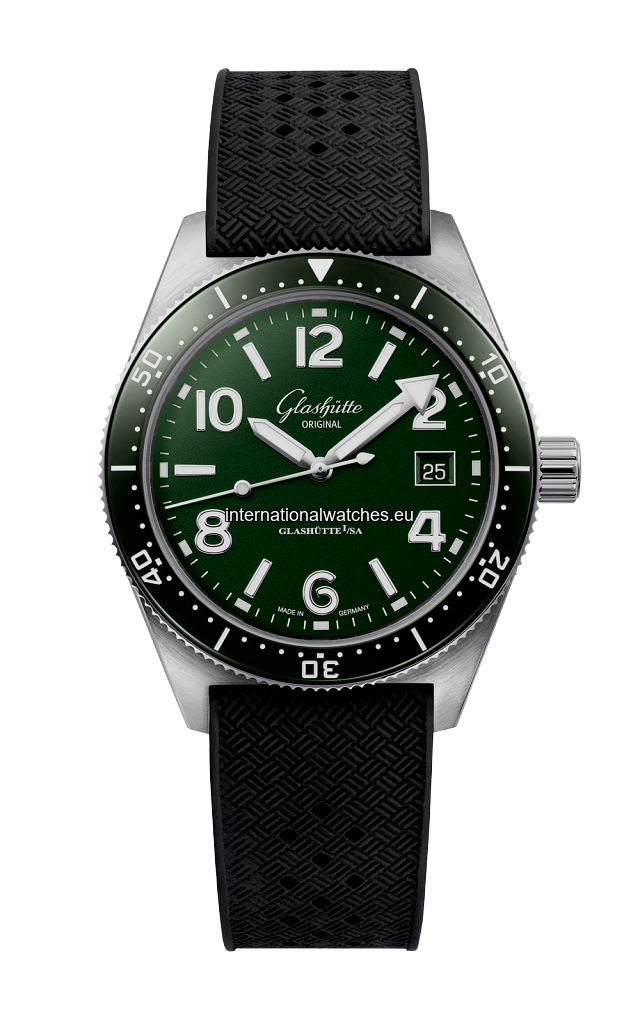 The SeaQ diver’s watch with green dial ensures optimal legibility & is therefore ideal for underwater adventures. Stainless steel, rubber strap black.