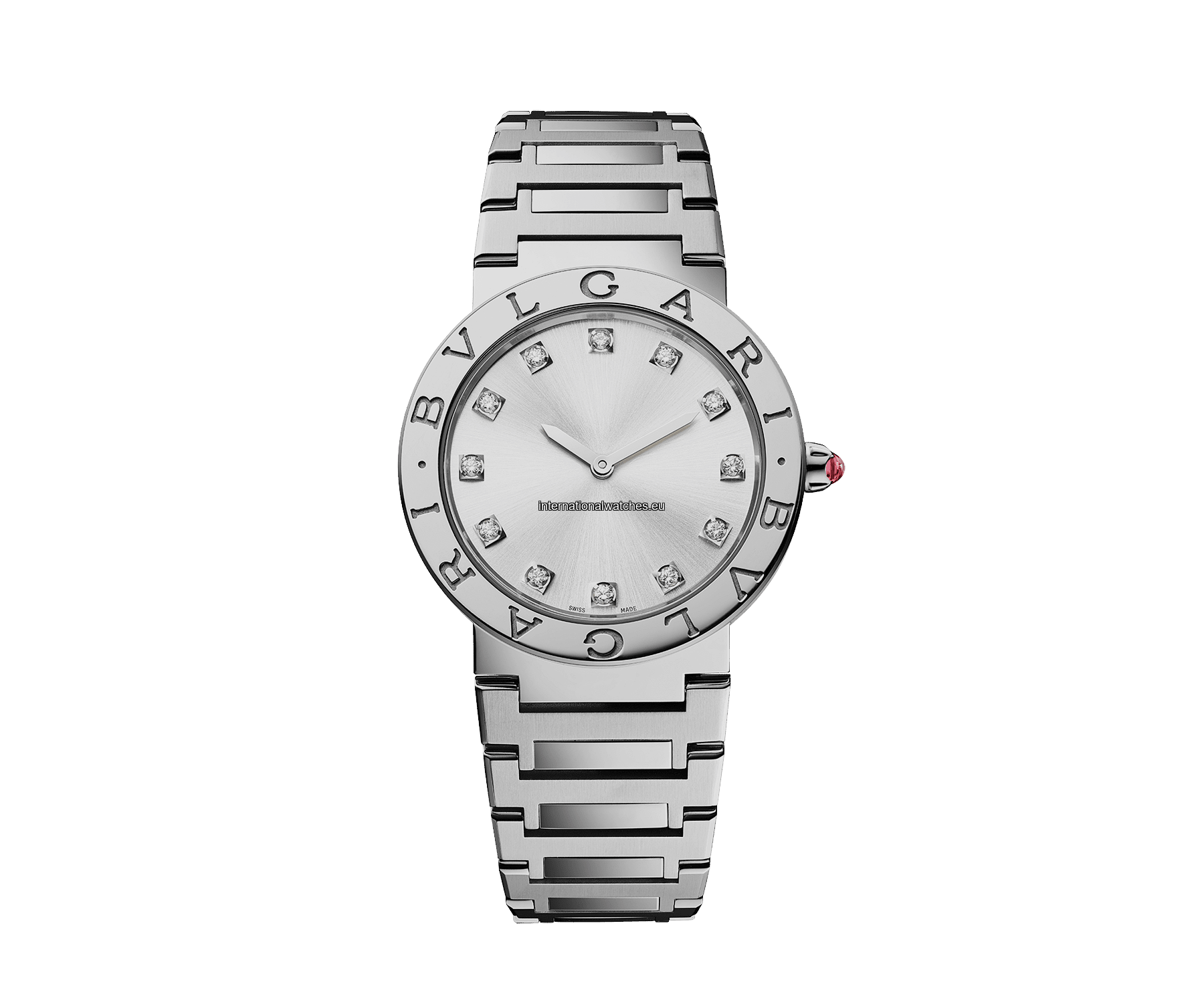 Bvlgari Bvlgari Lady watch with stainless steel case and bracelet, stainless steel bezel engraved with double logo, silver dial and diamond indexes. Water-resistant up to 30 metres
