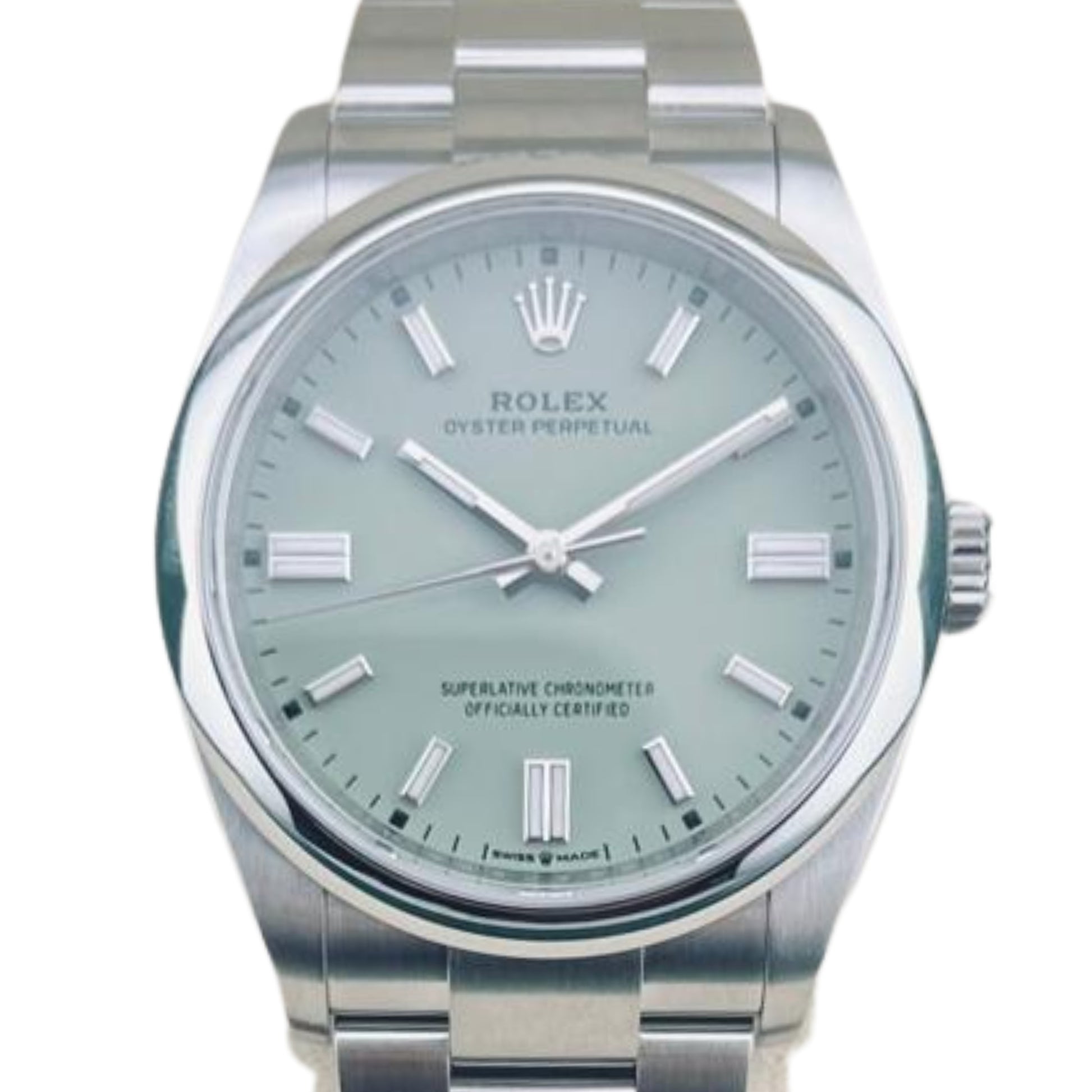 Case & Size: Crafted from corrosion-resistant Oystersteel, this watch features a sleek 36 mm Oyster case with a smooth, domed bezel for a timeless appeal.