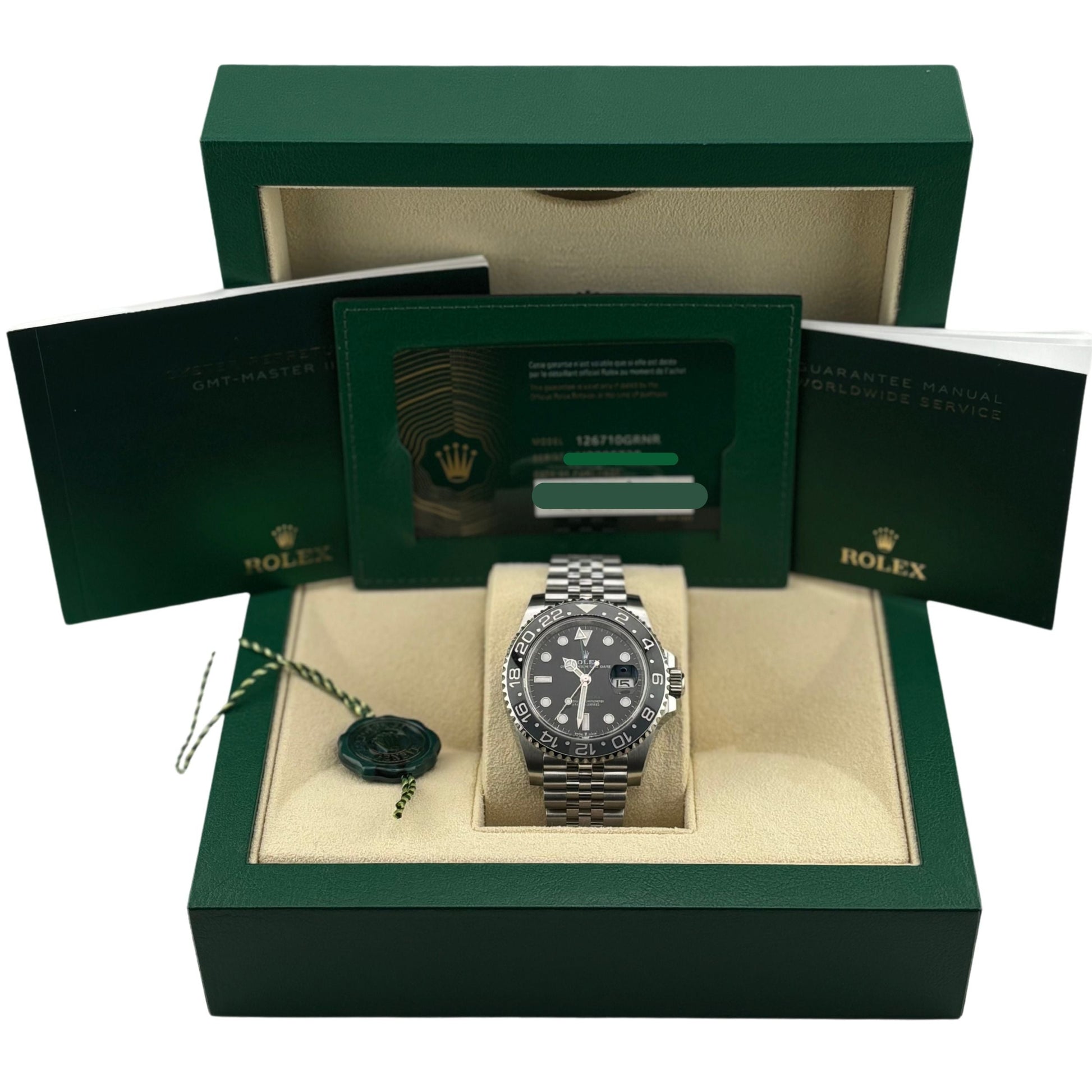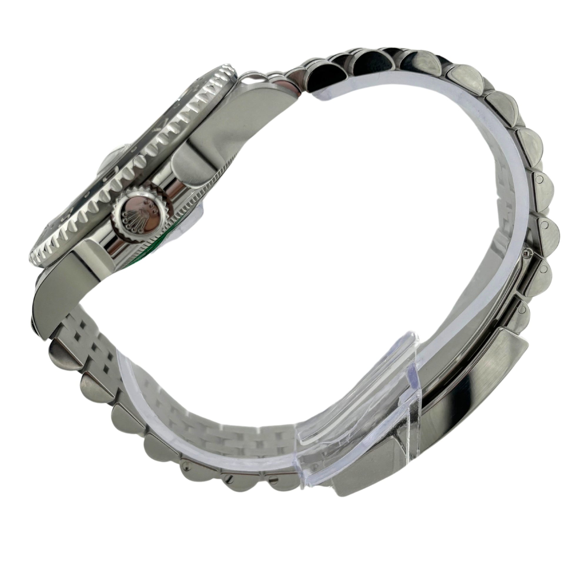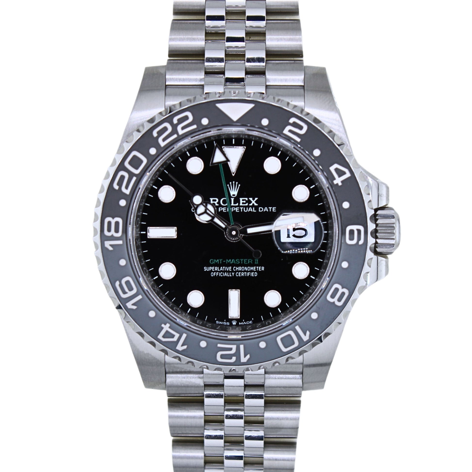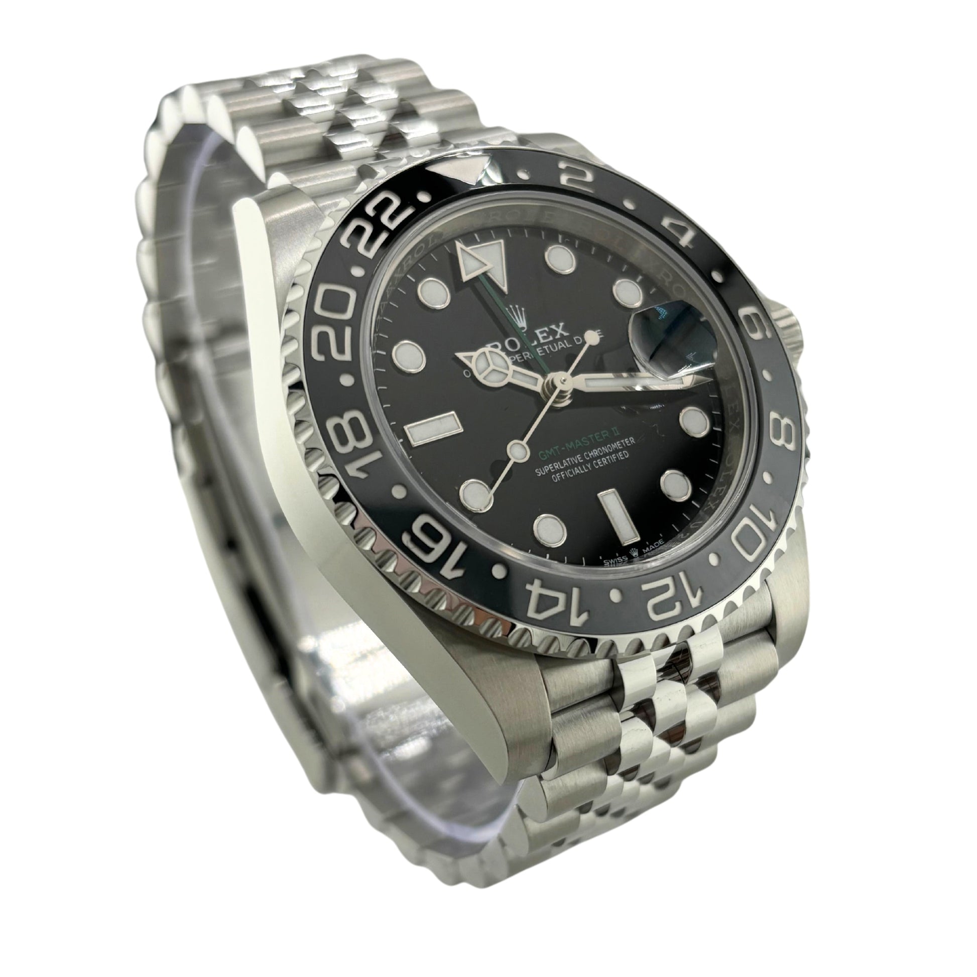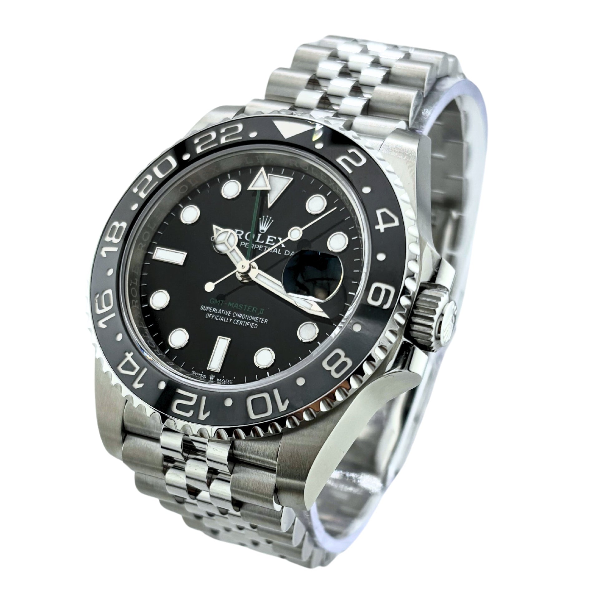 Brand new. This model features a black dial and a two-colour Cerachrom bezel insert in red and blue ceramic. Designed to show the time in two different time zones simultaneously during intercontinental flights, the GMT-Master II has come to be recognized for its robustness and versatile appearance.