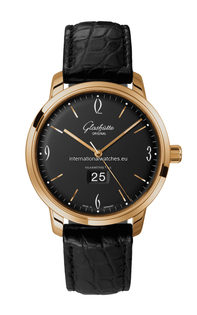 An authentic homage to the 1960s: the Sixties Panorama Date in vintage design. Automatic watch with black dial, rose gold case, leather strap.