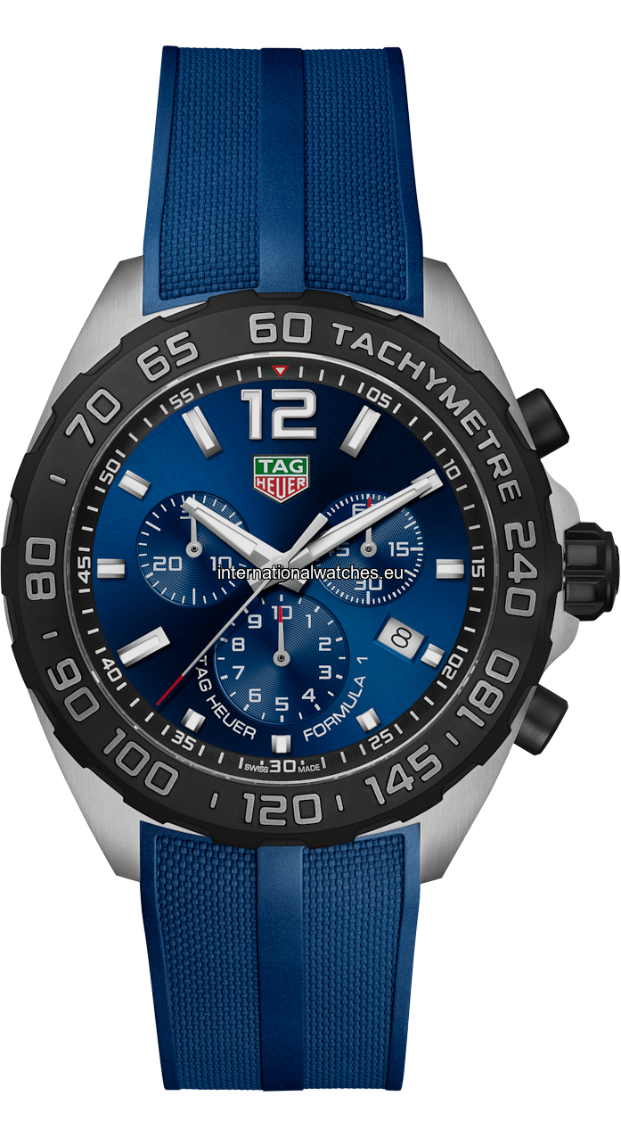 Experience the epitome of sporty elegance with this TAG Heuer Formula 1 timepiece. Showcasing a vibrant blue dial and equipped with a versatile blue rubber strap, this 43 mm watch lends a modern edge to a racing legend.