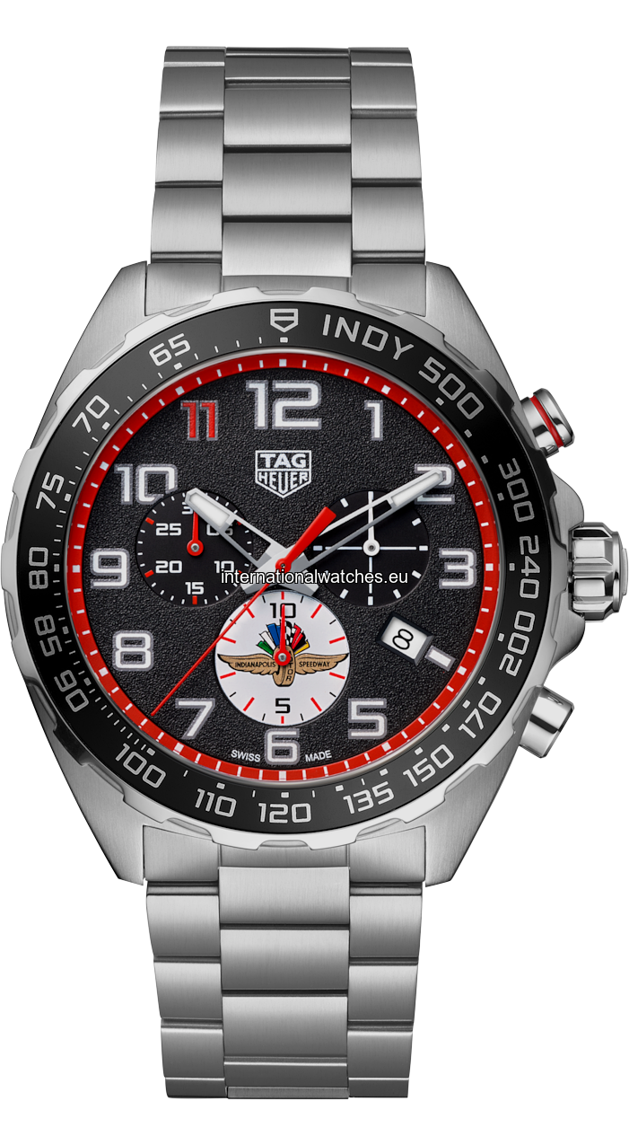 Embrace the thrill of Indy 500 with this TAG Heuer Formula 1 chronograph. Designed for those who live life in the fast lane, this special edition 43 mm timepiece is a tribute to the world's most dangerous racetrack. A must-have for every racing enthusiast.