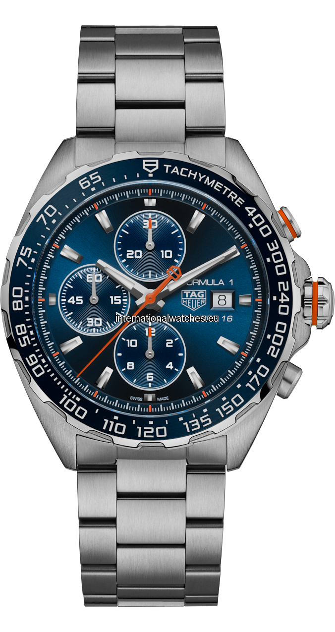For gentleman drivers craving elegance with a sporty edge, this TAG Heuer Formula 1 chronograph is your go-to timepiece. Distilling an energetic look with its vivid orange highlights, this 44 mm watch is the perfect match for speed lovers.
