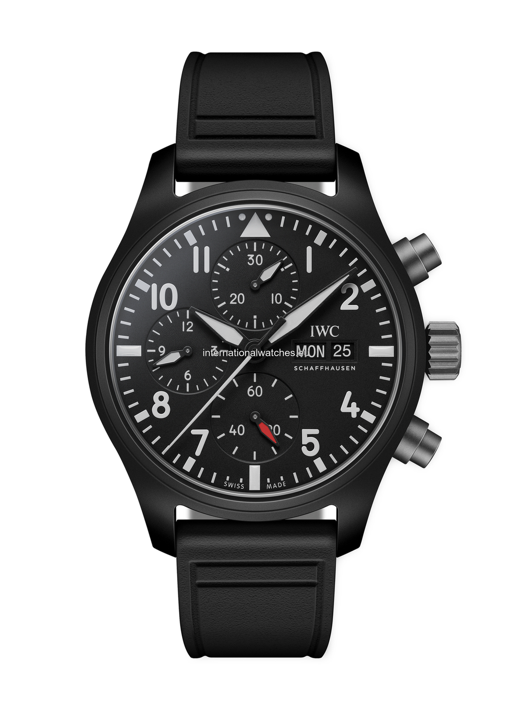 Since the introduction of the IWC TOP GUN line in 2007, black zirconium oxide ceramic has been the signature material of the collection. Based on an elaborate manufacturing process, ceramic cases are not only extremely hard and scratch-resistant but also lightweight and corrosion-resistant. The Pilot’s Watch 41 TOP GUN combines a “Jet Black” ceramic case in an ergonomic 41 millimetres size with a black dial and a black rubber strap. The crown and pushers made of titanium. A titanium case back complements the sleek and sporty chronograph design. The timepiece is powered by the IWC-manufactured 69380 calibre. The robust and precise chronograph movement in classic column-wheel design is housed in a soft-iron inner case to protect it from the effects of magnetic fields. The versatile sports watch offers a water resistance of 10 bar and is equipped with the IWC EasX-CHANGE® system, which makes it possible to exchange the strap quickly and easily without needing additional tools.