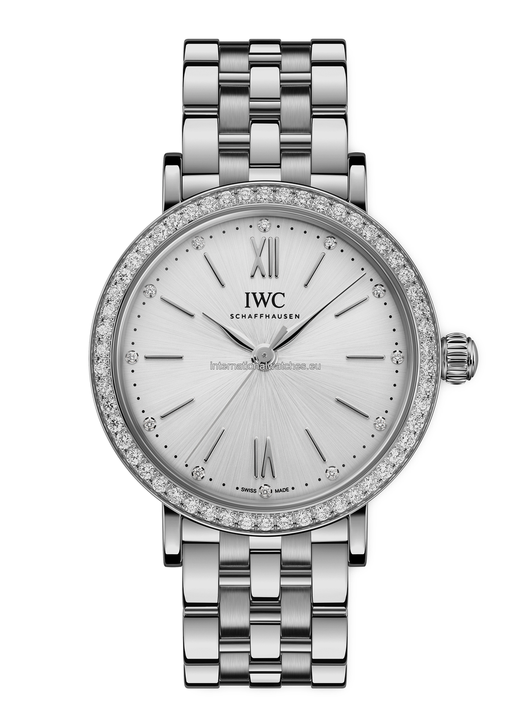 With a design that is both refined and restrained, the Portofino exudes notable freshness and purity. Thanks to its reduced case size of 34 millimeters, the Portofino Automatic 34 fits perfectly on slender wrists and offers excellent wearing comfort. It also marks a return to the beginnings of this line in the 1980s, when IWC released a number of Portofino references with similarly small case sizes. This model features a stainless steel case, a silver-plated dial, and rhodium-plated hands and appliqués. The case and the dial are decorated with 66 diamonds weighing almost 1 carat. Because of an improved setting, the diamonds reflect the light better and have a more visible presence and added brilliance. This timepiece is fitted with a high-grade 5-link stainless steel bracelet, offering high wearing comfort. Thanks to the integrated quick-change system, it can easily be exchanged.