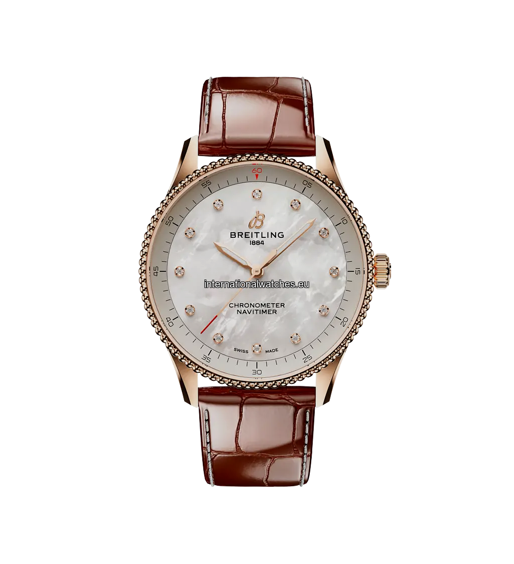 Our icon now comes in 36 and 32 mm sizes for women and men who love the look and feel of a smaller diameter watch. While the 36-mm Navitimer features the beaded bezel and iconic circular slide rule that gives the Navitimer its unmistakable appearance, the dazzling 32 mm variation forgoes the slide rule in favor of a simplified dial design suited to its slim diameter.