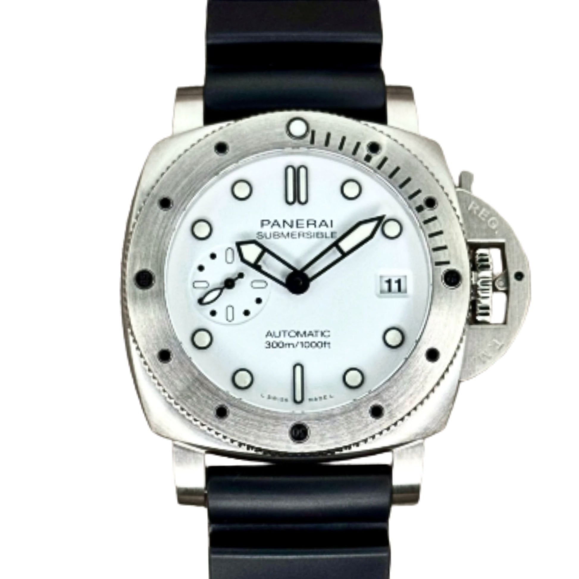 Submersible, PAM 1590 Automatic mechanical, P.900 calibre Brushed steel anti-clockwise rotating bezel with graduated scale,