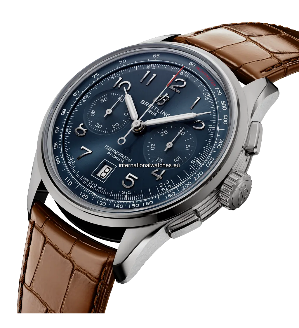 To create its modern Premier, Breitling preserved distinctive vintage-Premier details, including the smooth fixed bezel, twin-register dial, streamlined rectangular pushers and applied Arabic numerals. The Premier B01 Chronograph 42 is available in an array of dial colors and case materials. It comes on a choice of classic alligator leather strap or sleek 7-row metal bracelet. Today’s Premier also lives up to Willy Breitling’s uncompromising technical standards with its exceptional self-winding movement—the COSC-certified Breitling Manufacture Caliber 01—designed for maximum precision, reliability and functionality.