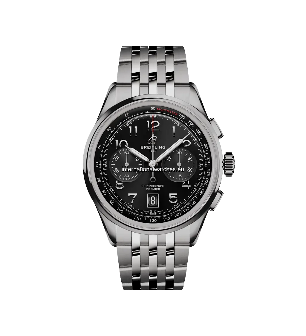 To create its modern Premier, Breitling preserved distinctive vintage-Premier details, including the smooth fixed bezel, twin-register dial, streamlined rectangular pushers and applied Arabic numerals. The Premier B01 Chronograph 42 is available in an array of dial colors and case materials. It comes on a choice of classic alligator leather strap or sleek 7-row metal bracelet. Today’s Premier also lives up to Willy Breitling’s uncompromising technical standards with its exceptional self-winding movement—the COSC-certified Breitling Manufacture Caliber 01—designed for maximum precision, reliability and functionality.
