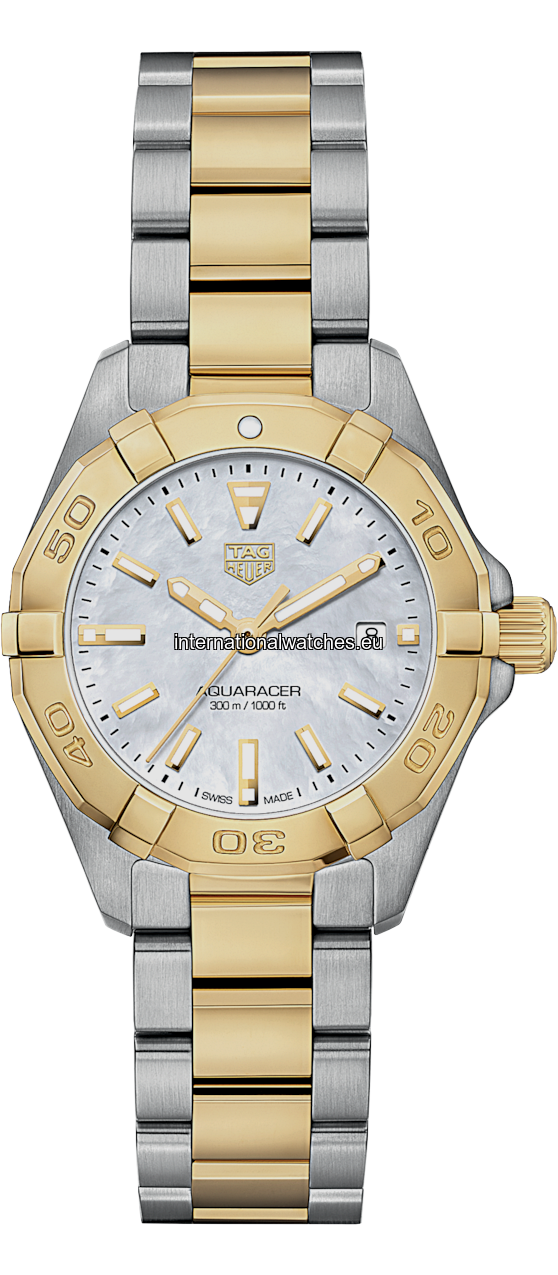 Make an entrance with this dazzling combination of steel and gold. Discreetly sized at 27mm, it features a 18K gold-plated unidirectional turning bezel and screw-down crown at 3 o’clock. The dial is white mother of pearl.