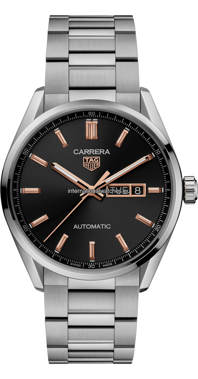 Black and gold combine for a striking luxury look on this resolutely determined TAG Heuer Carrera. With the convenience of a day and date display, there's function to back up the elegant form of this emblematic watch, perfect for those on-the-go.