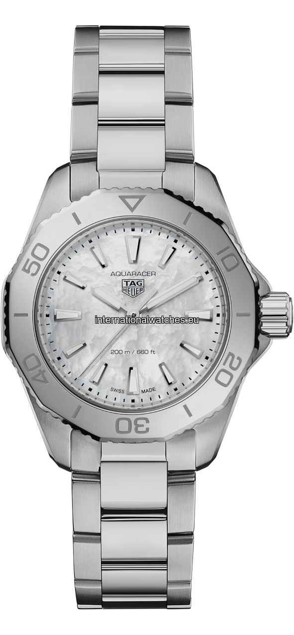 Featuring a delicate white mother-of-pearl dial, this 30mm TAG Heuer Aquaracer strikes the right balance between elegance and technicity. With its ultra-resistant steel case, 60-minute scale bezel and bracelet, this timepiece is eager to go further.