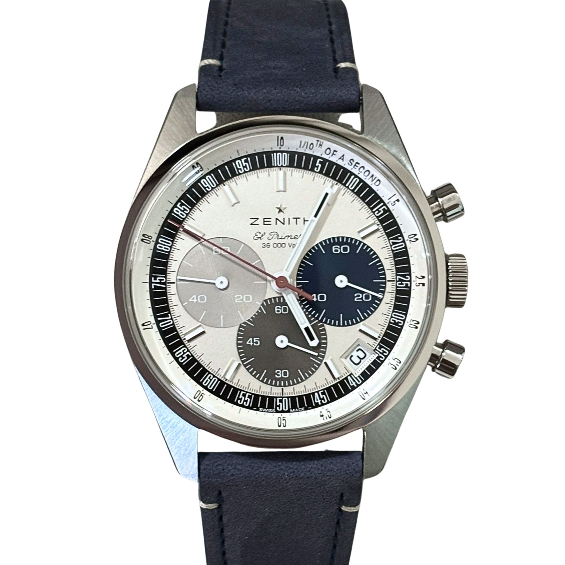 The CHRONOMASTER Original is crafted in a 38mm steel case in the same proportions as the A386, paired with the iconic tri-colour dial and a blue leather strap. Powered by the El Primero 3600 automatic high-frequency chronograph movement with 1/10th of a second chronograph function and a power reserve of 60 hours.