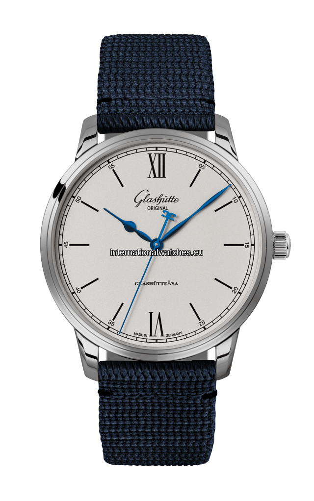 Impresses thanks to its simple and elegant design: The dress watch Senator Excellence. Stainless steel, silver dial, second stop, blue synthetic strap.
