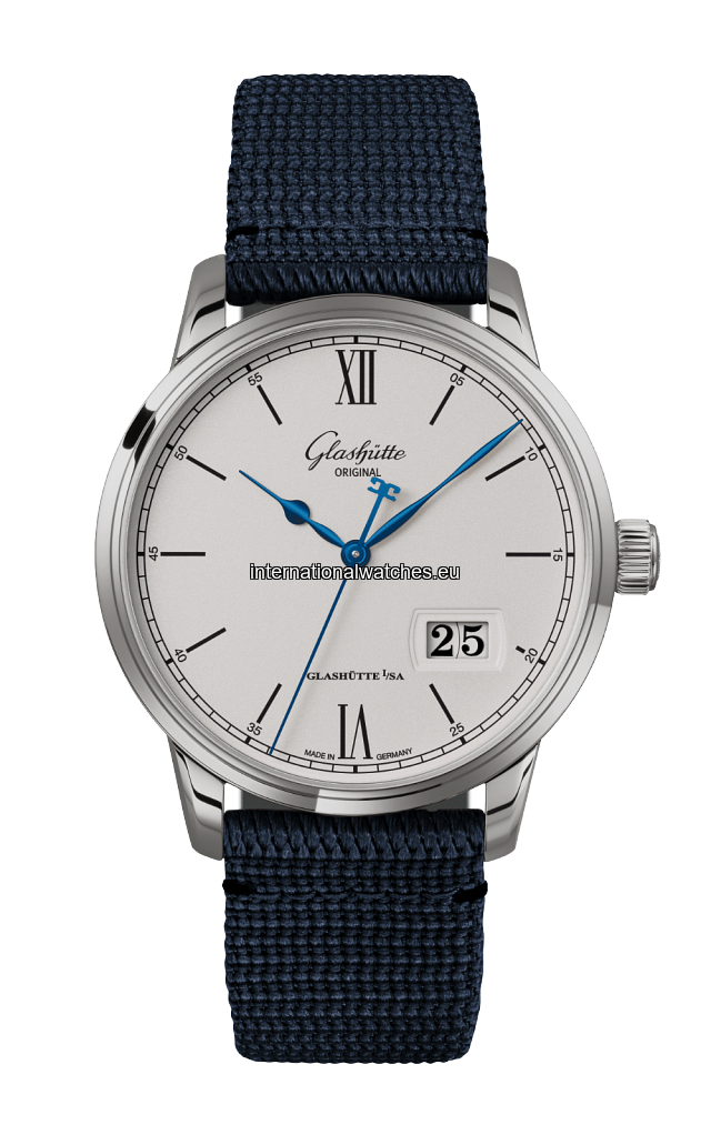 The Senator Excellence Panorama Date: an elegant men’s watch characterised by calm and harmony. Stainless steel, silver dial, blue synthetic strap.