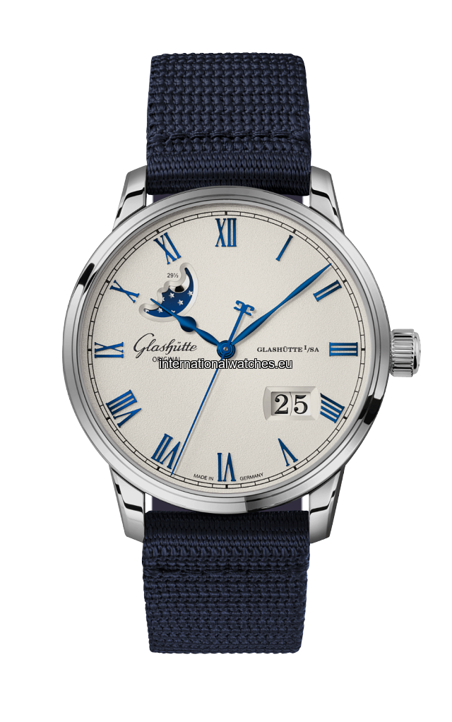 Simply perfect, for every day: Senator Excellence Panorama Date Moon Phase. “Frosted silver” dial, 100h power reserve, synthetic strap.