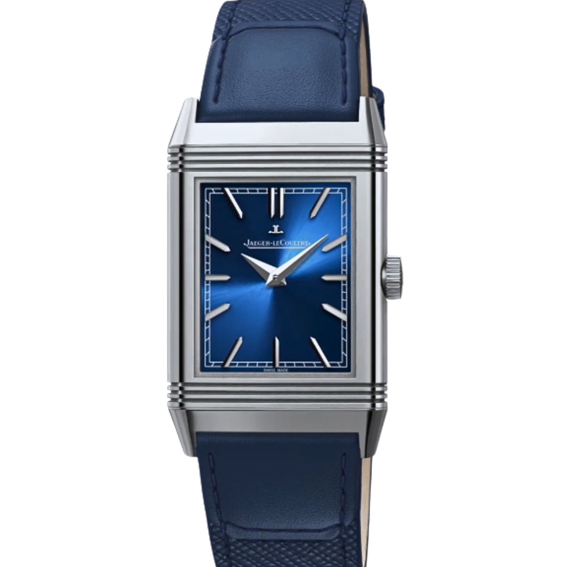 Chemin de fer, trapezoidal index, Dauphine hands, emblematic gadroons... following the signature codes of the first 1931 models, the Reverso Tribute Monoface is ideally proportioned. Measuring 40.1 x 24.4 mm, the case fits perfectly the shape of the wrist, making it an everyday watch. Underneath the sunray brushed blue lacquer dial, the reverse can be customized with an engraving or lacquer motif. Based on a Fagliano design specific to the Reverso, the blue calfskin strap has a double finish: smooth flaps, Saffiano grained for the rest. To keep the heart of the watch beating, the in-house Calibre 822 offers 42 hours of power reserve.