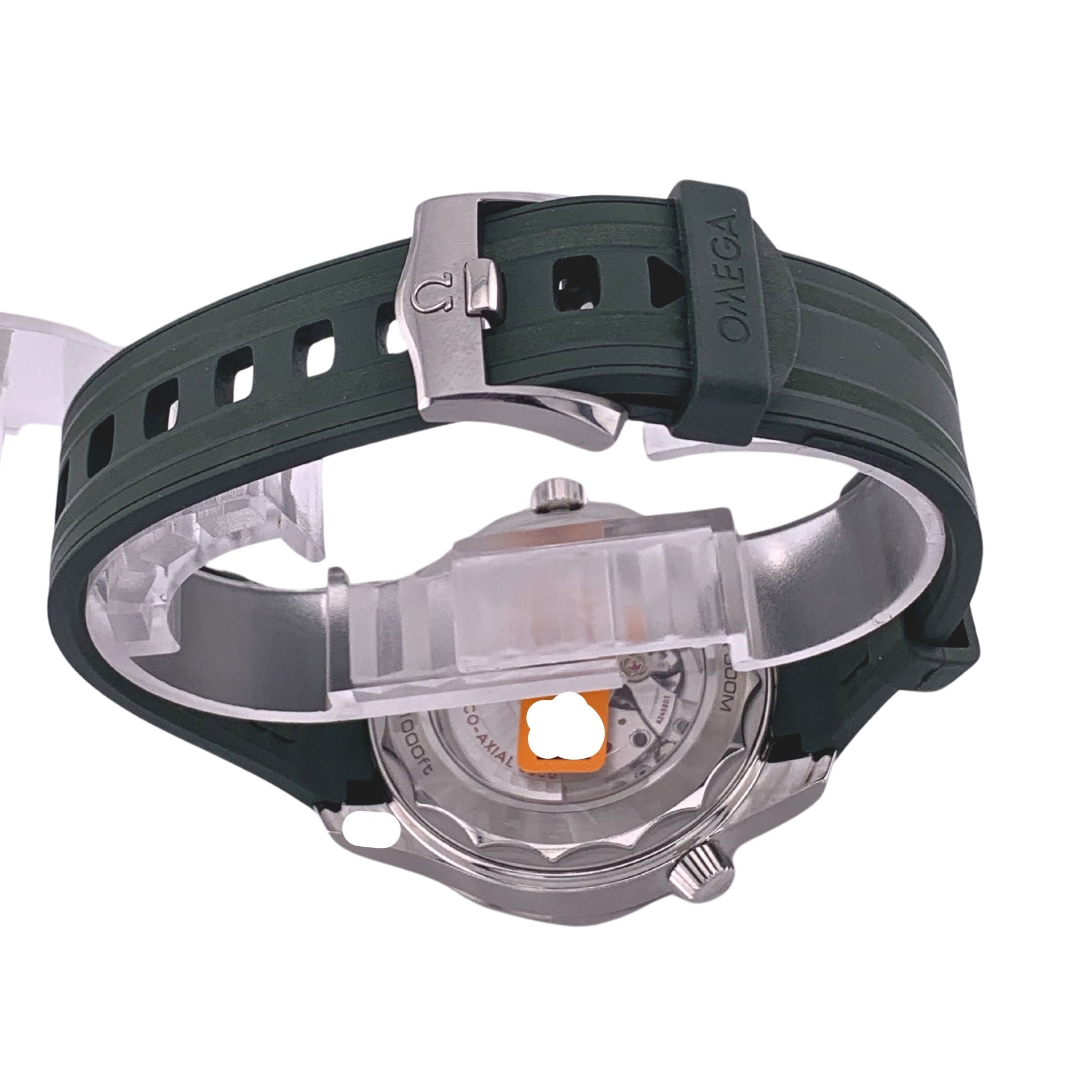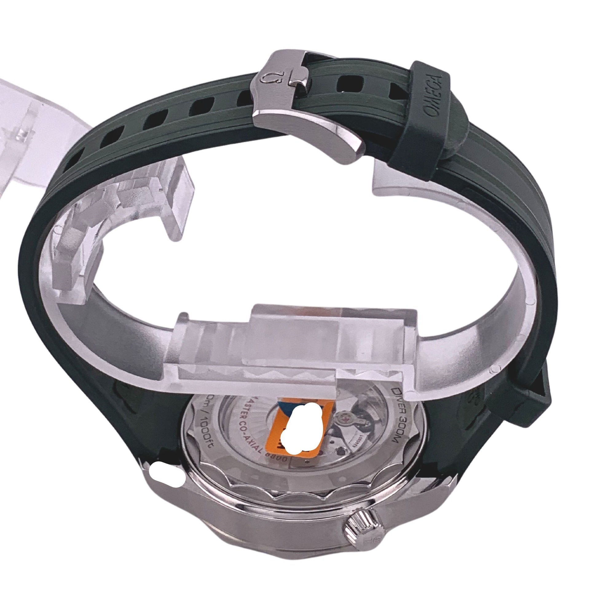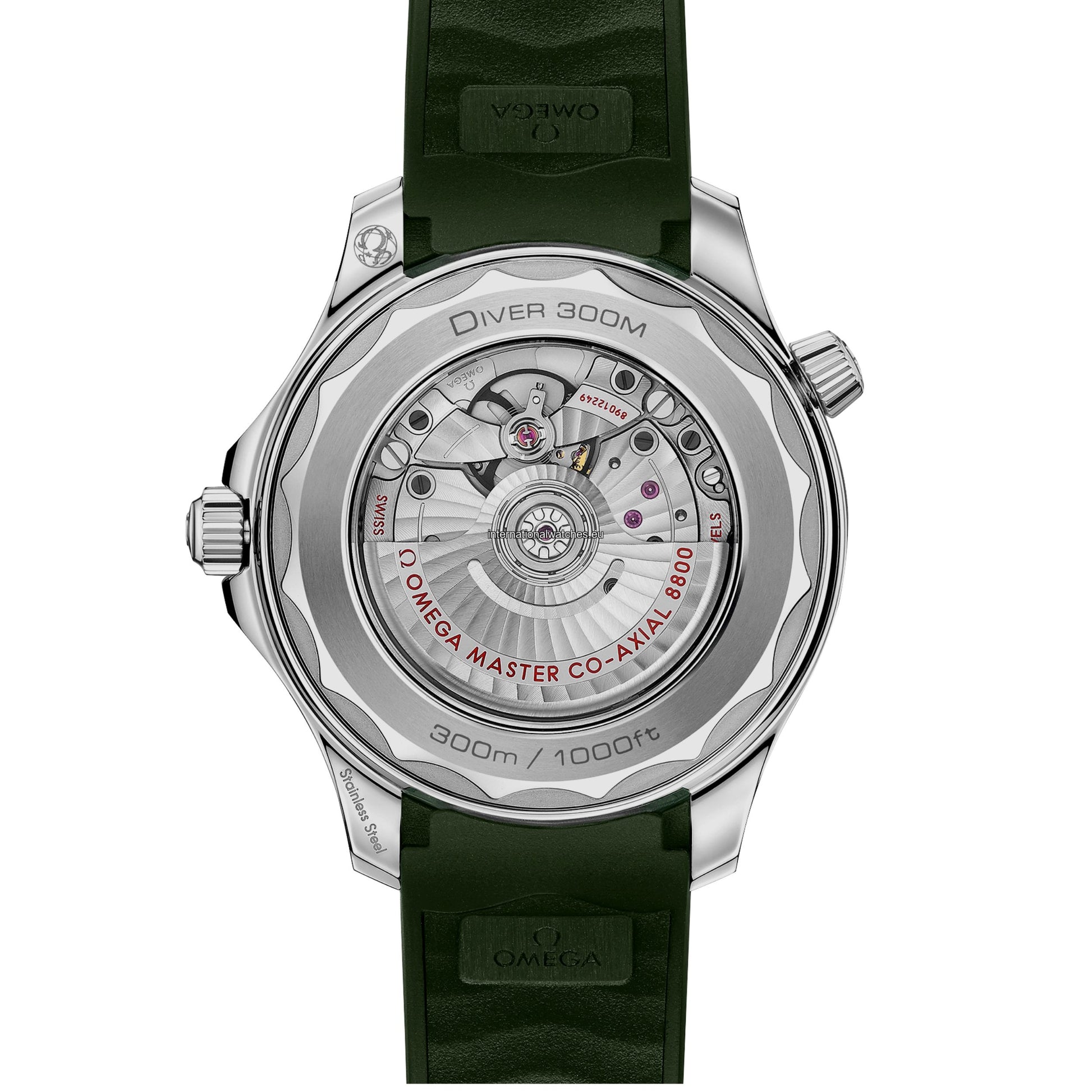 The watch is presented on a green rubber strap and is driven by the OMEGA Master Chronometer Calibre 8800, which can be seen through the sapphire-crystal on the wave-edged caseback. Brand - Omega Model - Seamaster Reference - 21032422010001 Movement - Mechanical Automatic Case Size - 42mm Case Material - Steel Bracelet Material - Green Rubber Bezel - Green Ceramic Dial - Wave Green Index Water Resistance - 300 Metres Box - Omega Original Box 21032422010001 - 210.32.42.20.10.001 - O21032422010001 box 301