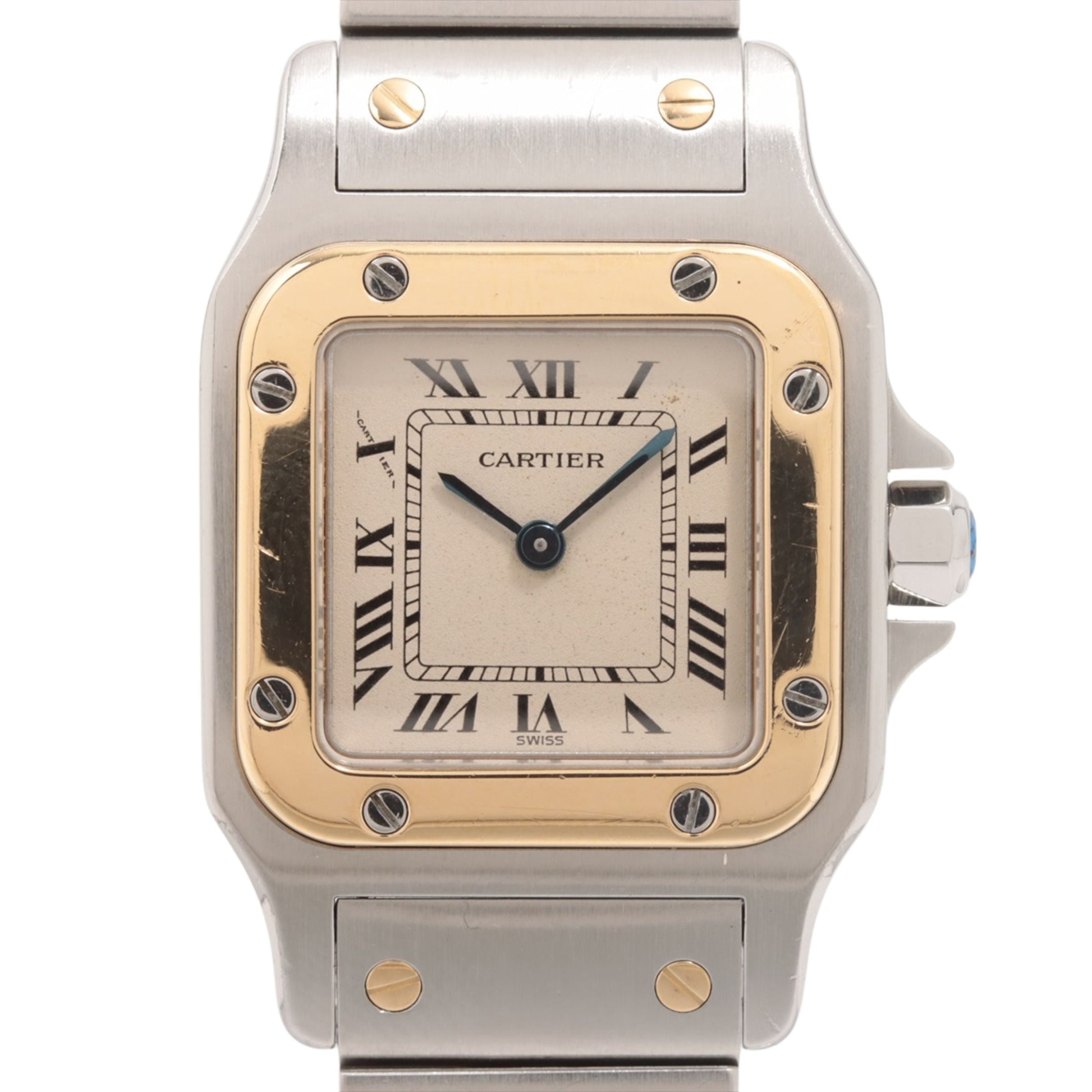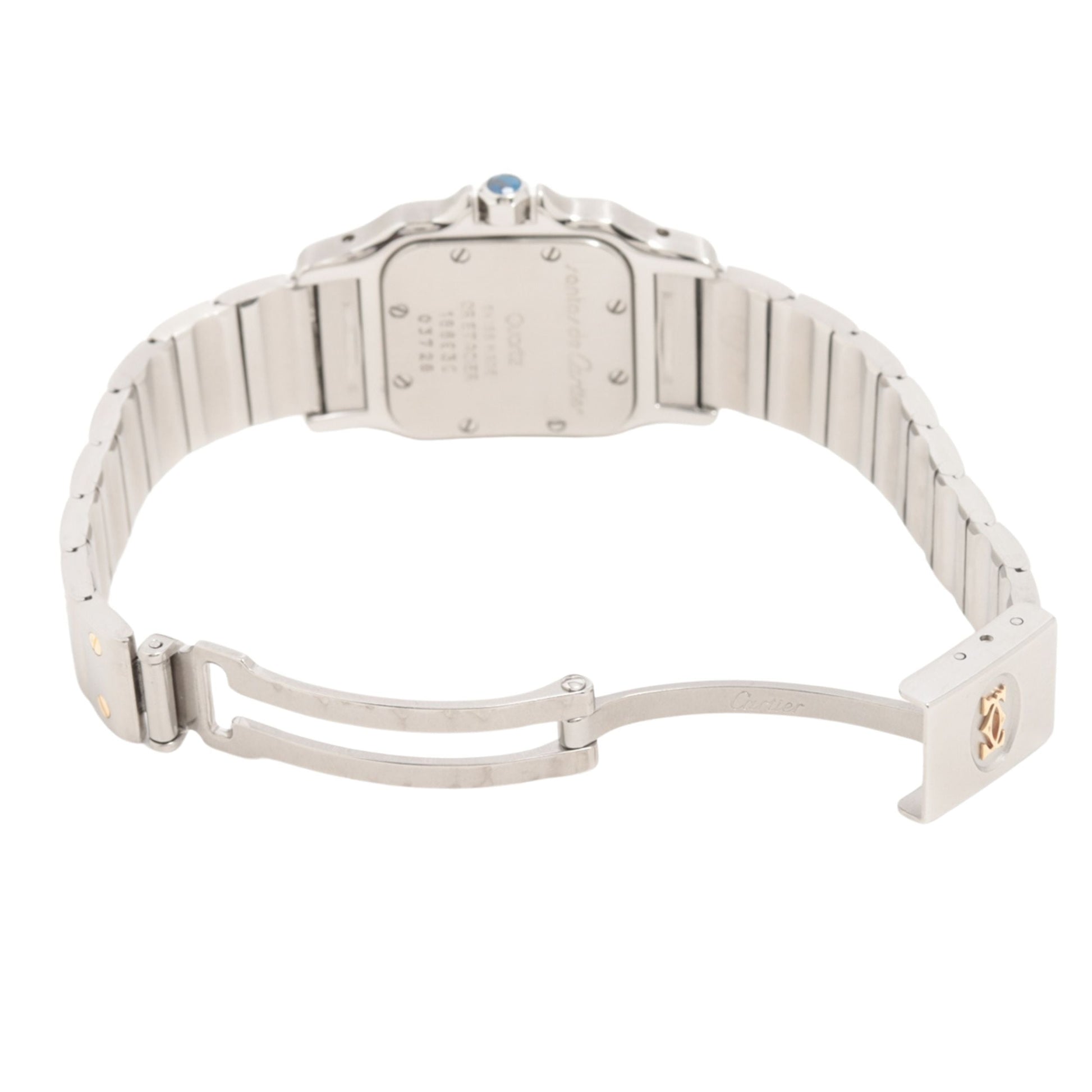 Cartier W20012C4, Typically features a white dial with Roman numerals, blue sword-shaped hands, and a date display at 6 o'clock.