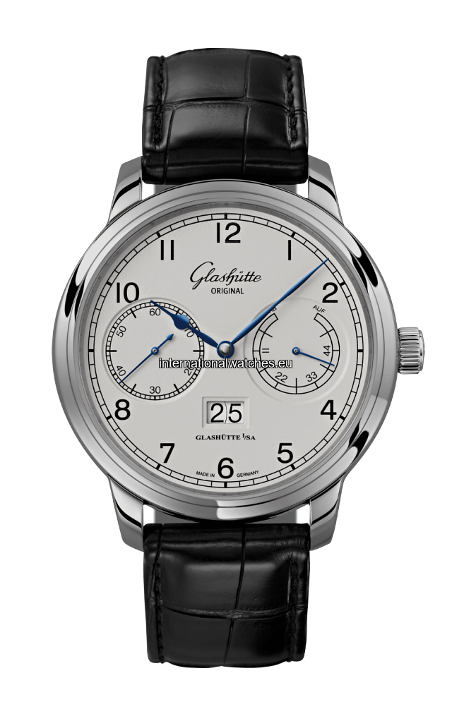 Functional and absolute precise: The Senator Observer. Stainless steel watch, silver dial, Panorama Date, power reserve display, black leather strap.