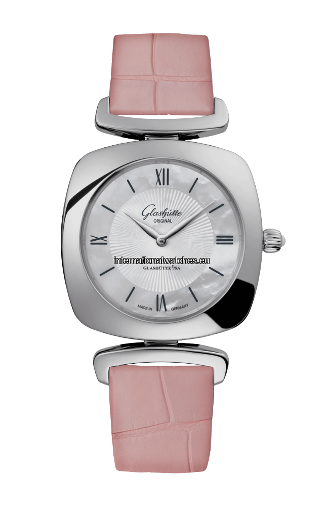A contemporary interpretation for modern women: the Pavonina ladies’ watch. Stainless steel case, mother-of-pearl dial, leather strap rose.
