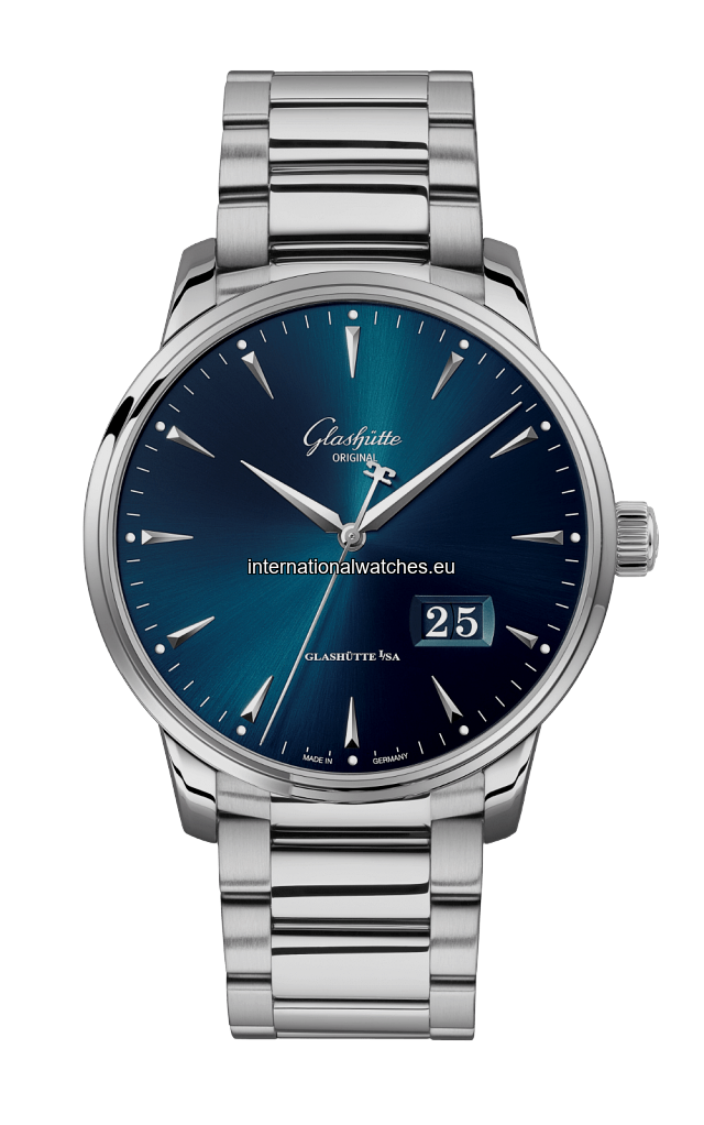 A contemporary, elegant men’s watch: The Senator Excellence Panorama Date in stainless steel. With blue dial, Panorama Date, metal bracelet.