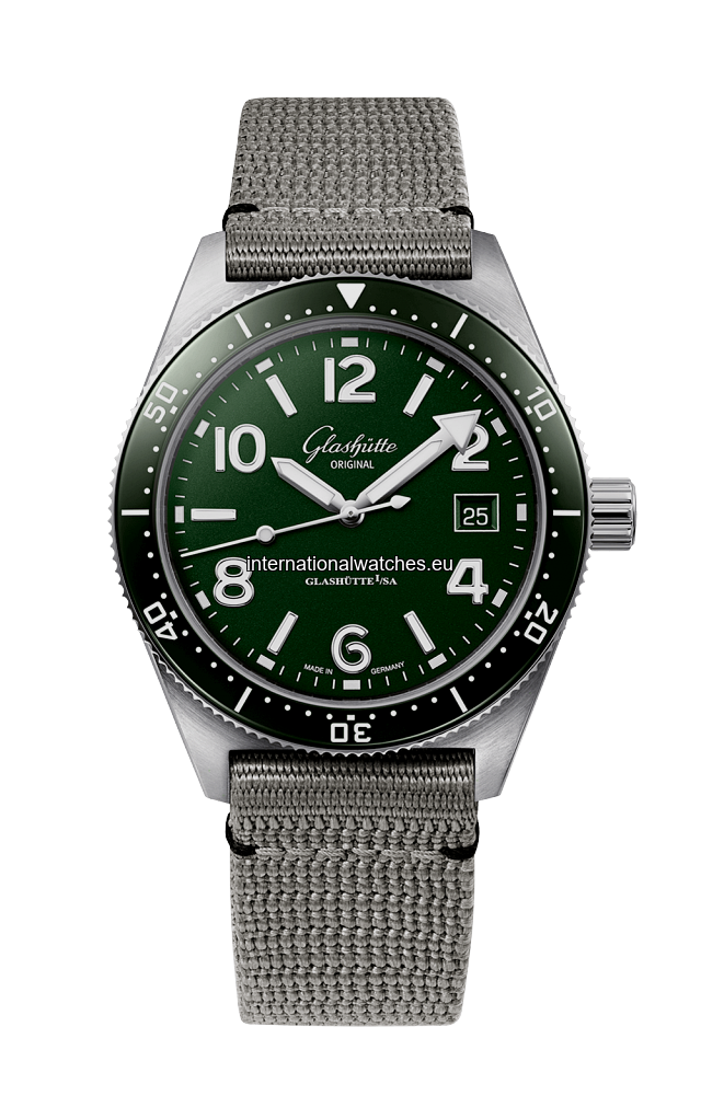 The SeaQ diver’s watch with green dial ensures optimal legibility & is therefore ideal for underwater adventures. Stainless steel, synthetic strap grey.
