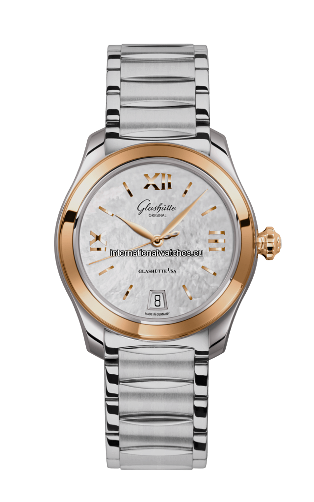 This bi-colour ladies’ watch, our Lady Serenade, displays the time precisely thanks to the calibre 39-22. Mother-of-pearl dial, small date, metal bracelet.
