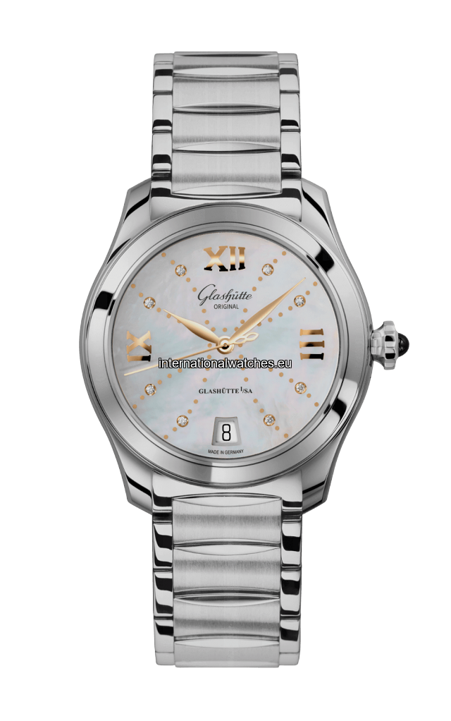 Lady Serenade in stainless steel with shimmering materials & gently curving forms – your timeless & proud companion. Mother-of-peal dial, metal bracelet.