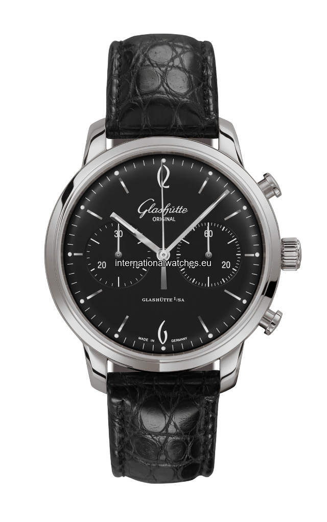 Sixties Chronograph: an iconic timepiece that combines retro design with functionality. Black dial, stainless steel case, leather strap in black.