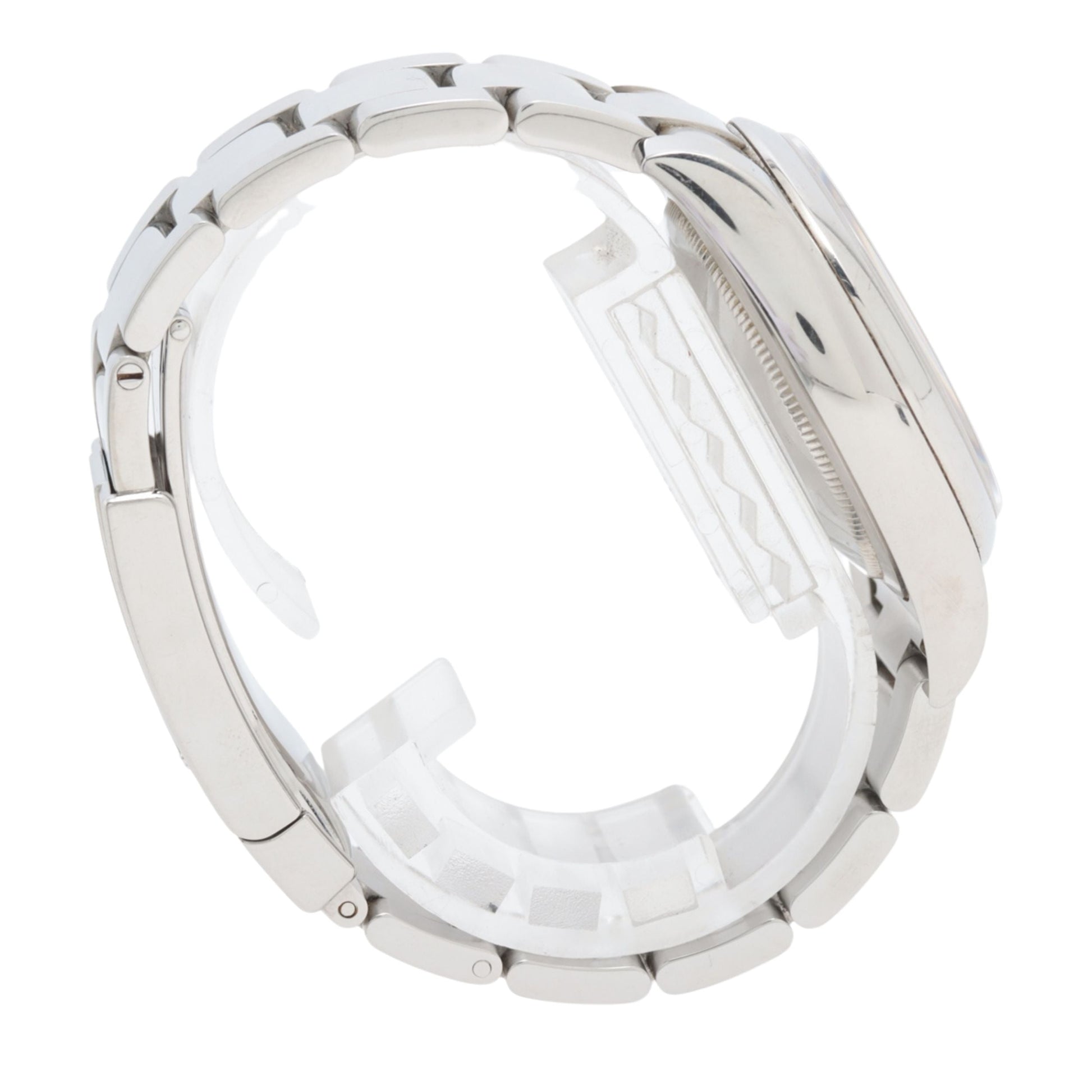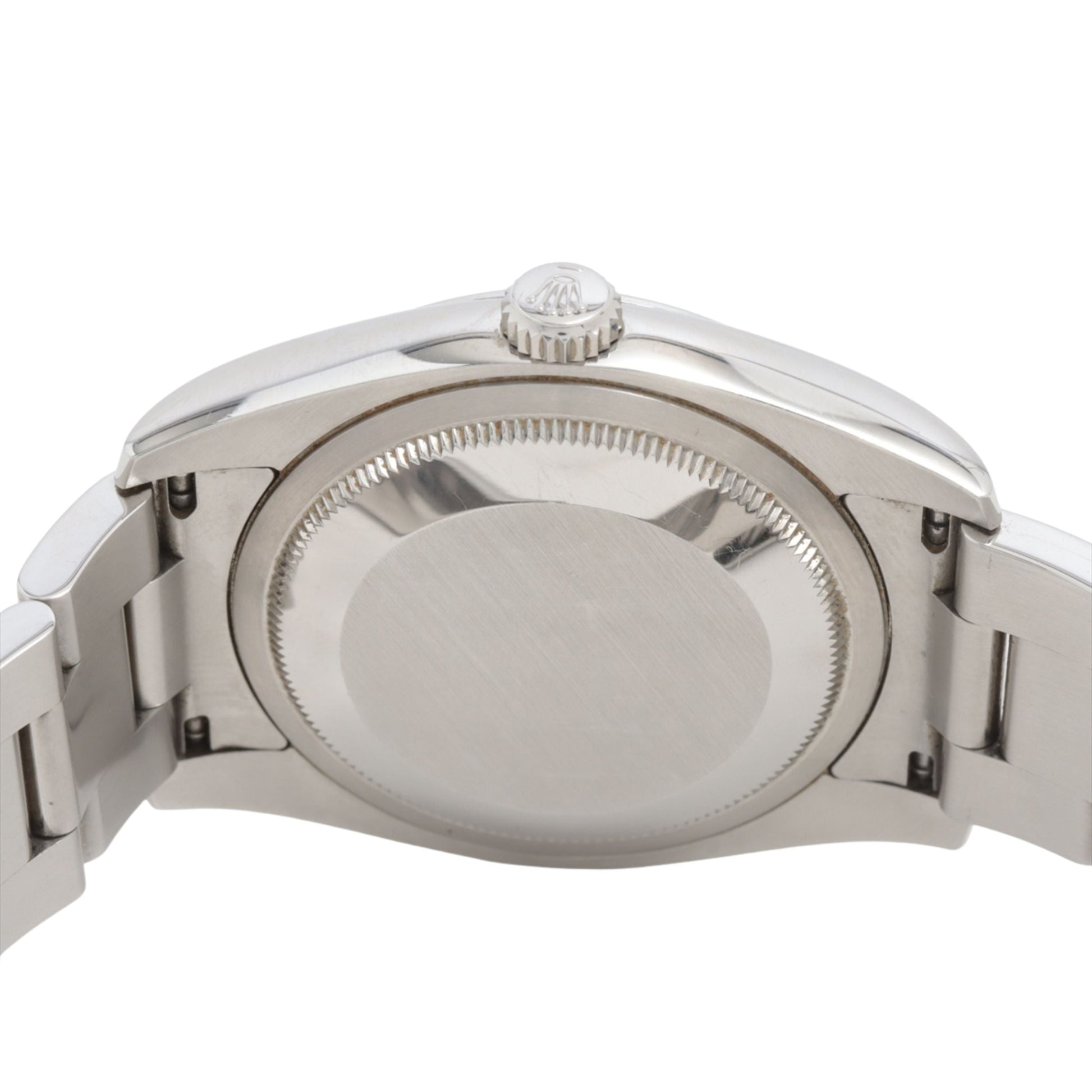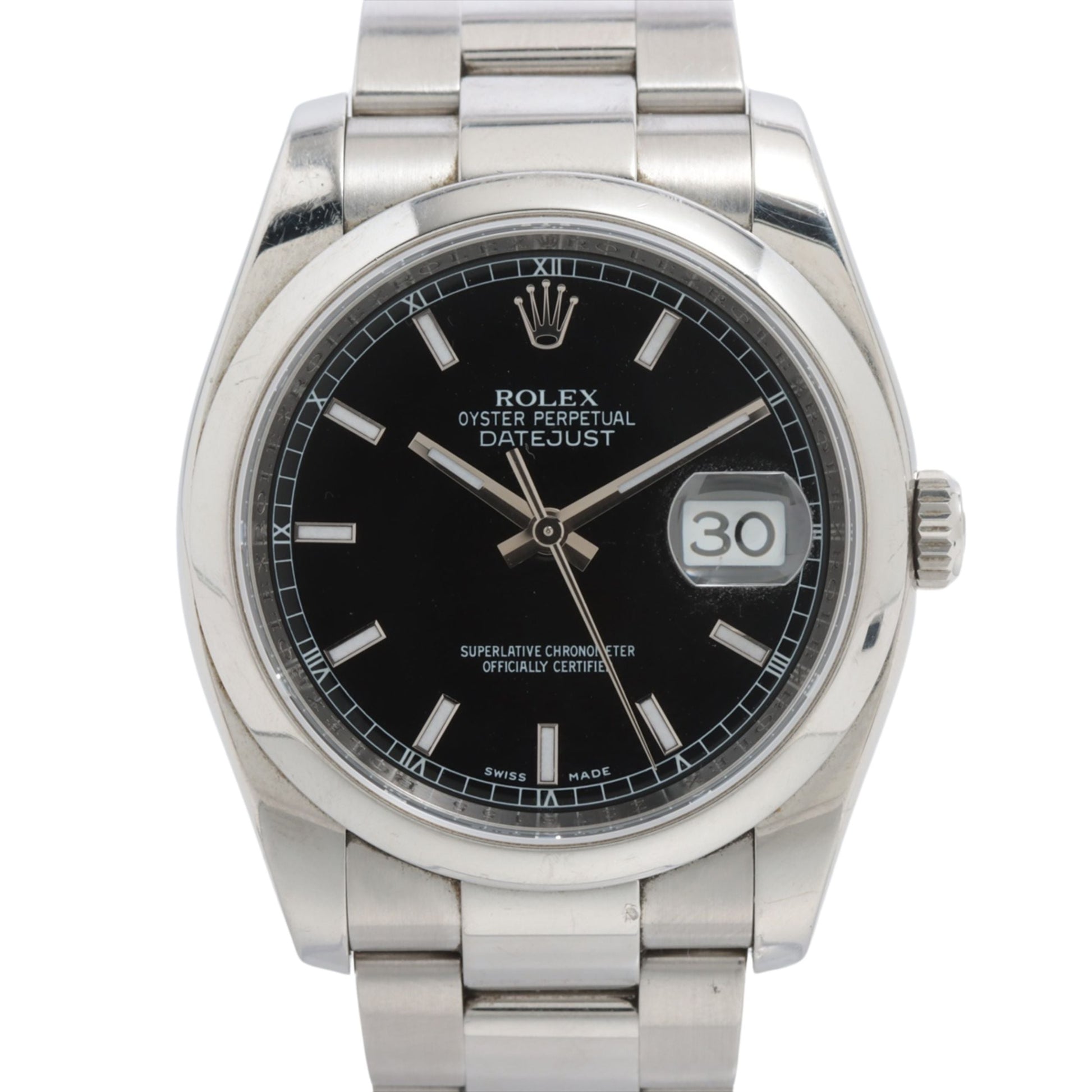 Stainless steel case with a stainless steel bracelet. Fixed domed stainless steel bezel. Date displays at the 3 o'clock position. 31 jewels automatic movement. Scratch resistant sapphire crystal. Solid case back. Case diameter: 36 mm. Deployment clasp. Water resistant at 100 meters/ 330 feet.