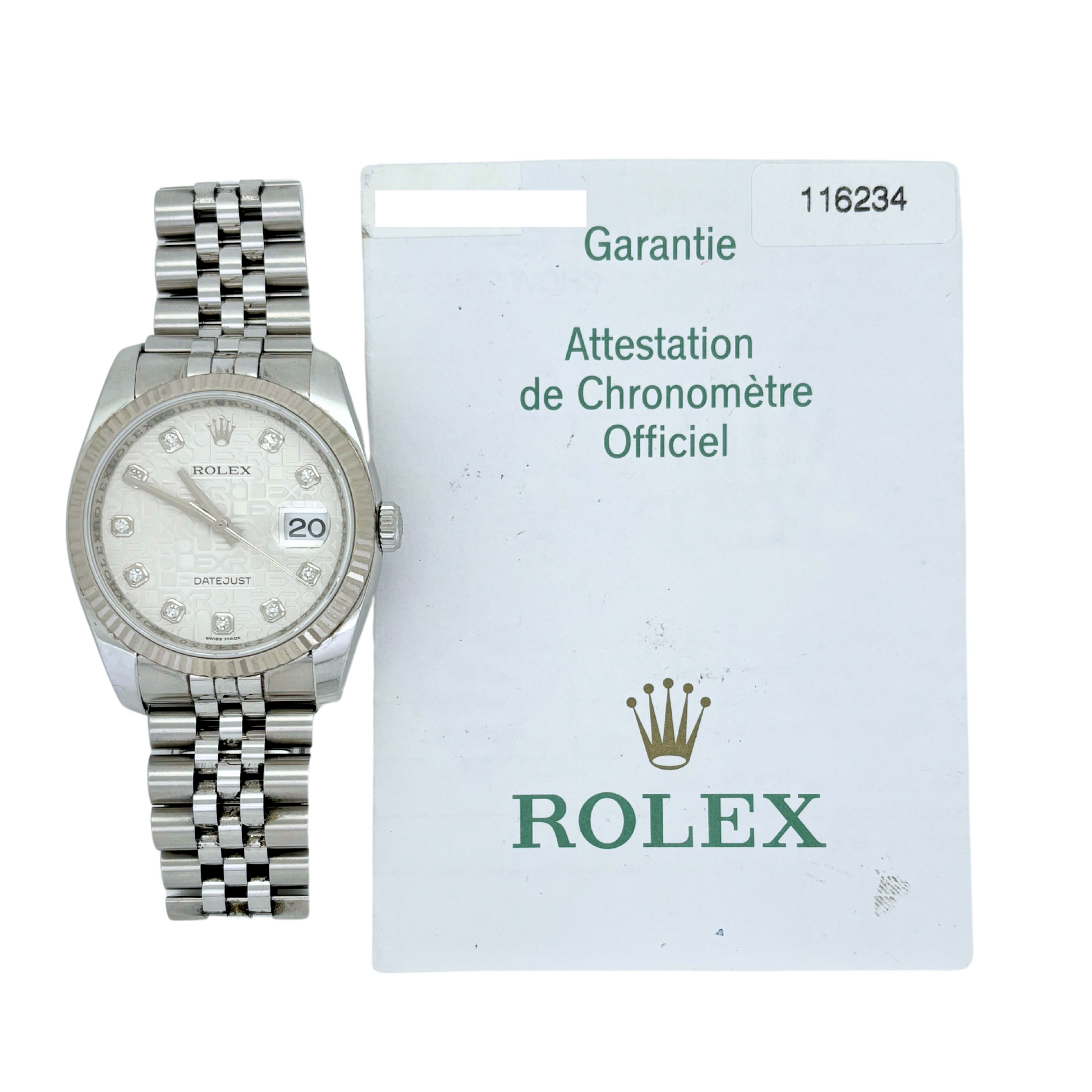 Rolex datejust 116234G Diamonds Year 2007, full set. Very good conditions.