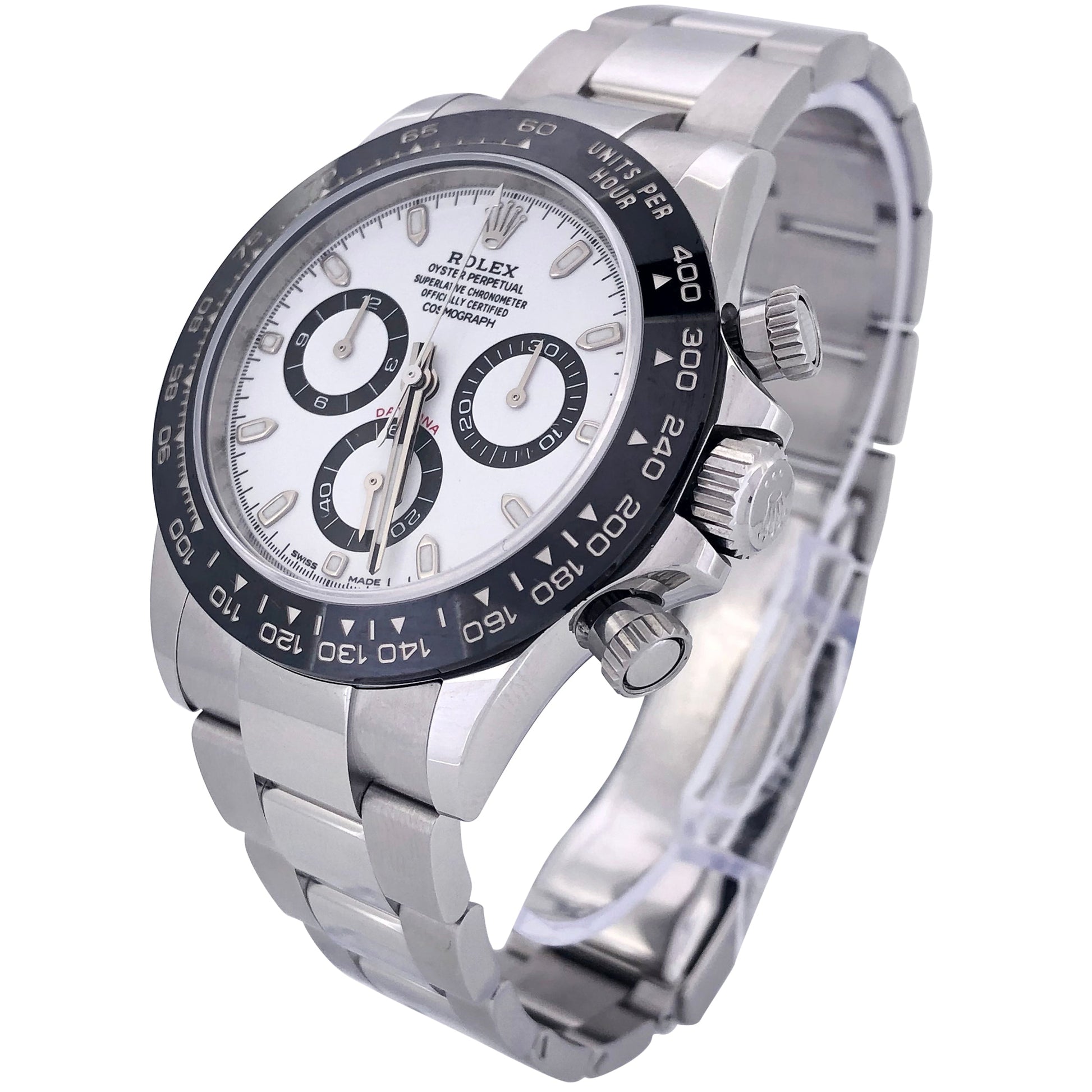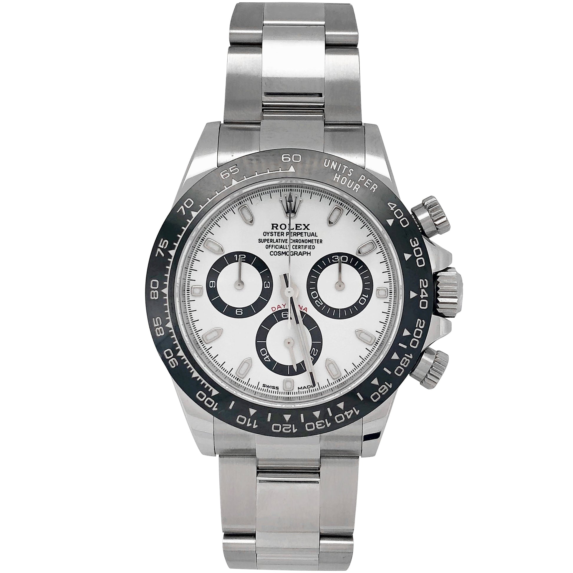 A key part of the model’s identity is the bezel moulded with a tachymetric scale for measuring average speeds of up to 400 miles or kilometres per hour. Blending high technology with sleek aesthetics, the black bezel is reminiscent of the 1965 model that was fitted with a black Plexiglas bezel insert.