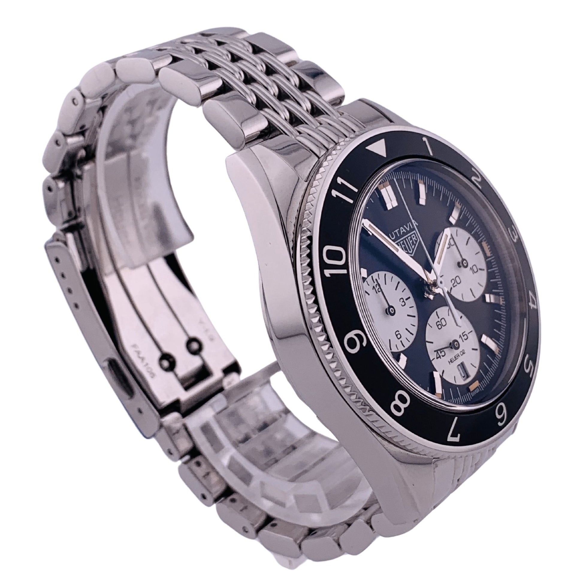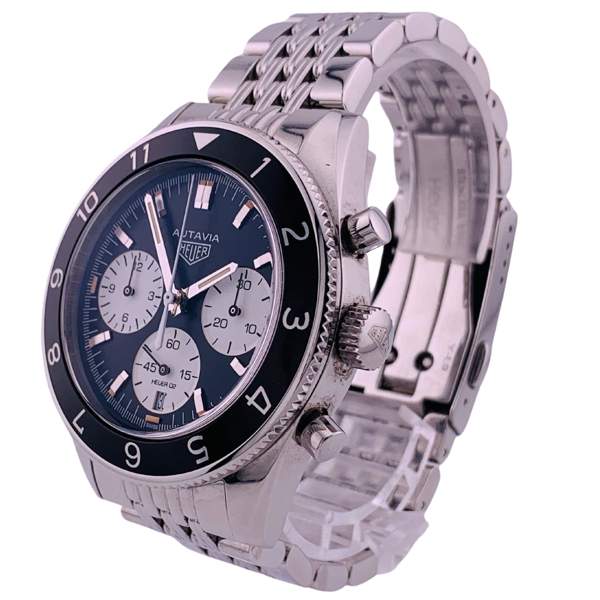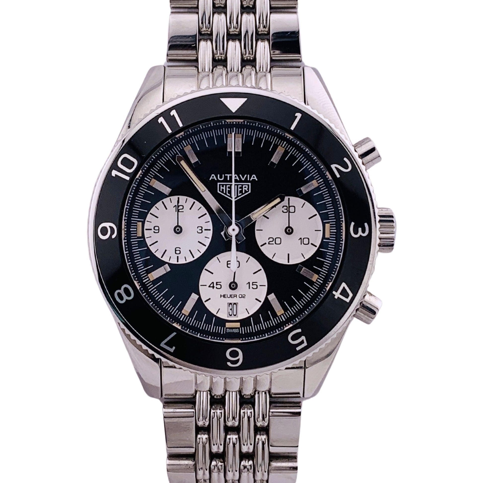 An updated heritage reissue of the classic, sought-after Heuer Autavia chronograph, this Heuer Heritage model gives you nearly the exact same look in a modernized package. The classic “panda” styling and nicely executed stainless bracelet make this a candidate for an everyday wearer.