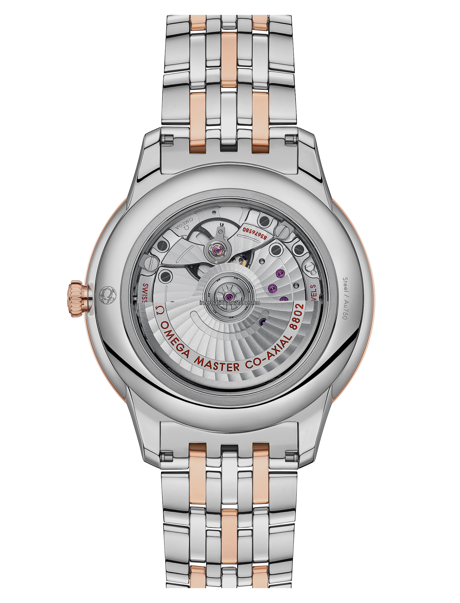 This Master Chronometer certified watch is presented on a stainless steel - Sedna™ Gold bracelet and is driven by the OMEGA Master Co-Axial Calibre 8802, which can be admired through the scratch-resistant sapphire crystal caseback.